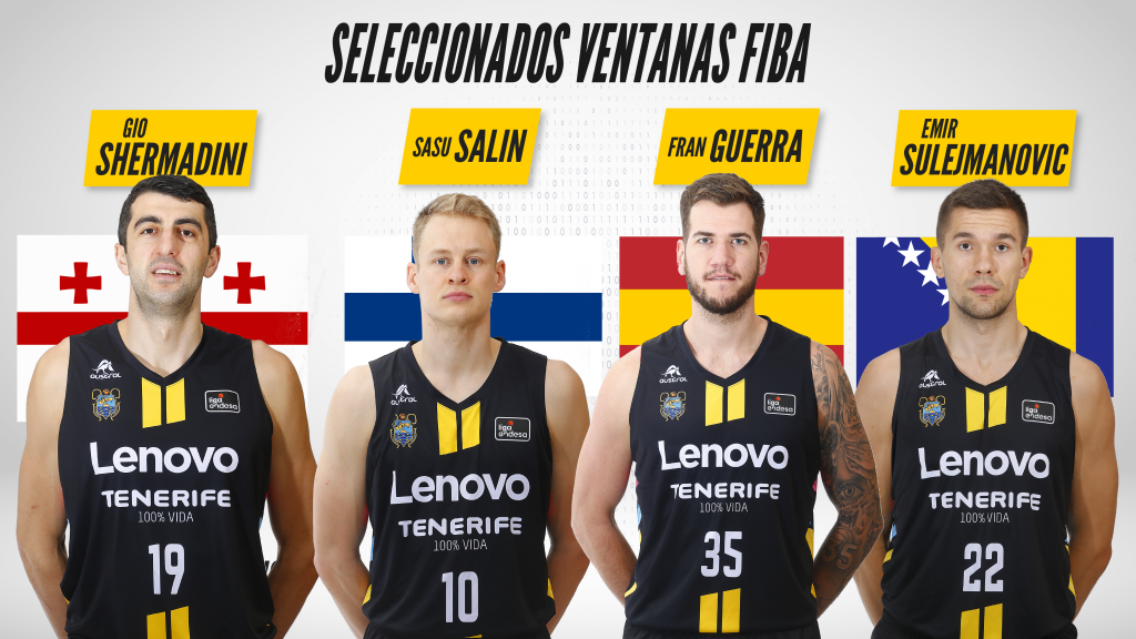 domingo, 14 febrero, 2021 - 01:02Los jugadores del Lenovo Tenerife, Fran Guerra, Gio Shermadini, Sasu Salin y Emir Sulejmanovic, se incorporarán entre hoy y mañana a las concentraciones de sus equipos nacionales, esto es, España, Georgia, Finlandia y Bosnia Herzegovina, respectivamente, para participar en una nueva Ventana FIBA, que incluirá partidos clasificatorios para el Eurobasket 2022.