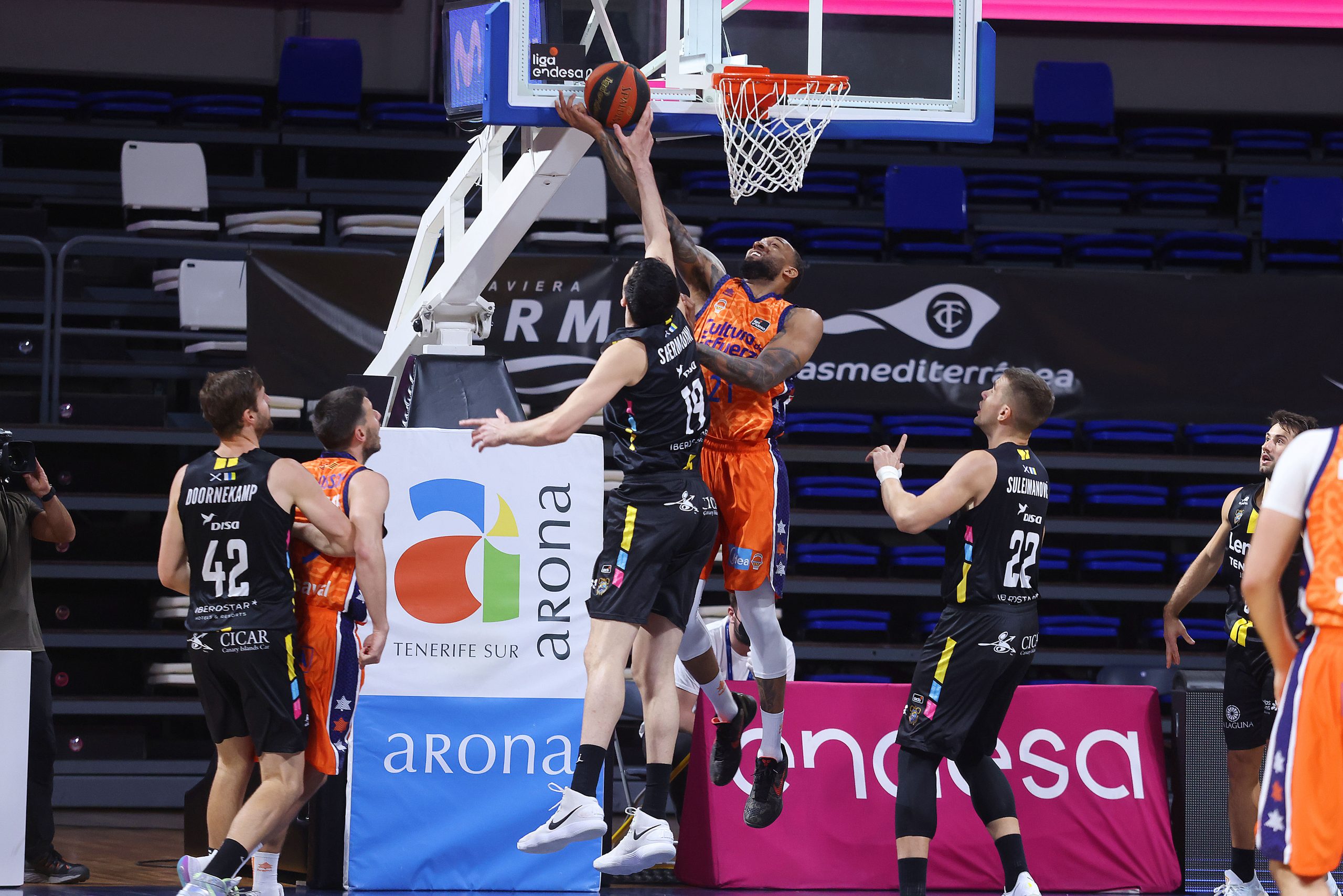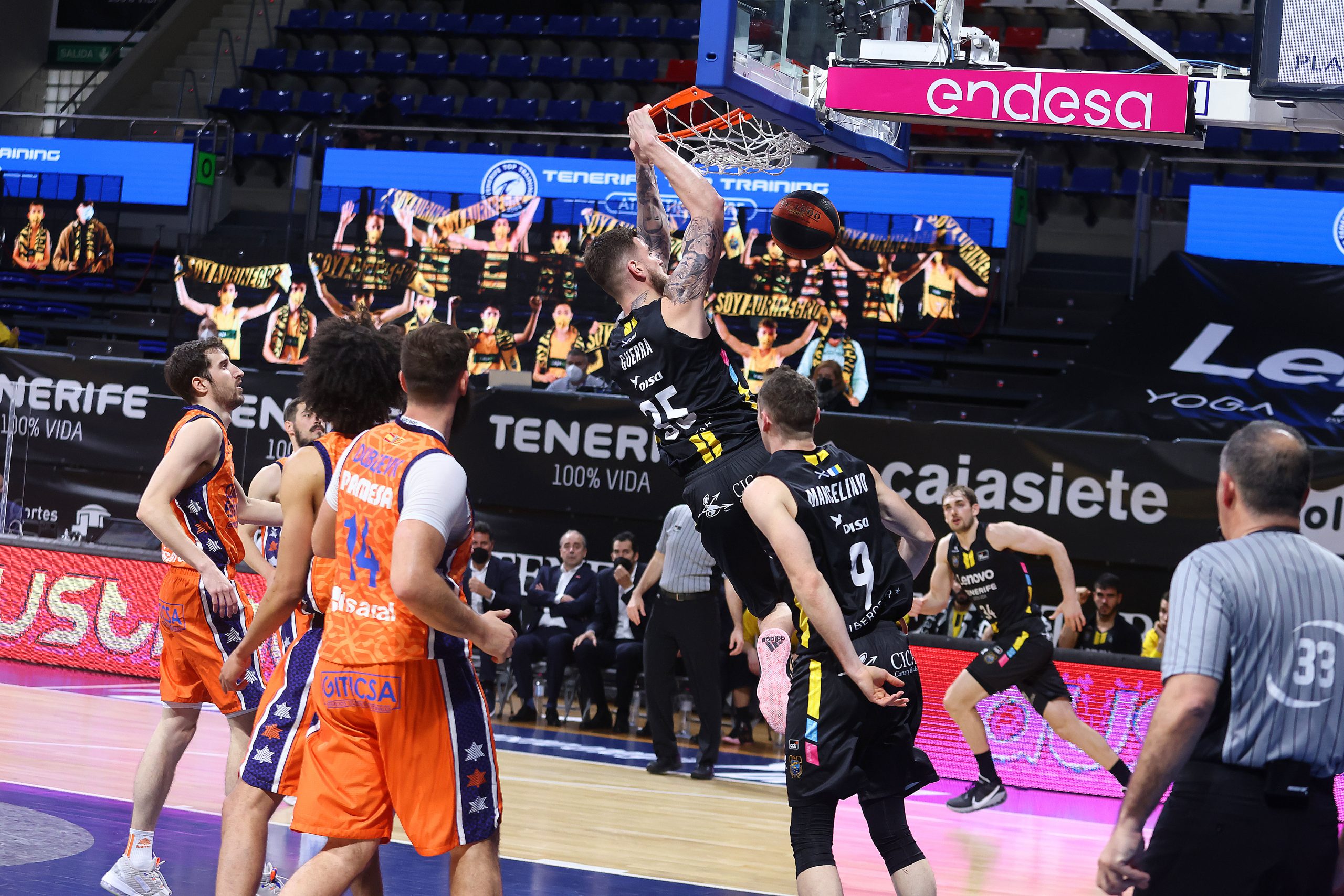 En un partido intenso, como si de un duelo de playoff se tratase, el conjunto tinerfeño firmó una gran puesta en escena (14-5); sufrió luego la reacción del equipo taronja, que hizo valer su potencial de Euroliga (29-37, 31-39, 34-41); supo sobreponerse a tiempo para levantar un -9 (52-61, min. 27); y llevarse la victoria en otro ejercicio de carácter y orgullo.