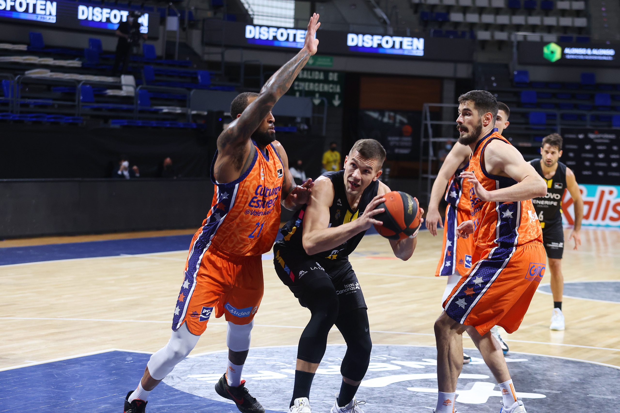 Huertas tiró de galones, Doornekamp siguió martilleando desde el triple (73-72) y Fitipaldo asumió también tiros importantes (76-74) para enfilar el cierre por delante. Lo intentó con todo el Valencia, pero en los minutos calientes, la defensa de los locales pintó el desenlace de aurinegro. Un triple de Marce y una posterior bandeja tras robo (86-81) permitían a los anfitriones acariciar ya el triunfo, sensación confirmada luego con un tapón clave de Aaron Doornekamp, antesala ya de las acciones que dieron pie al 90-86 definitivo.