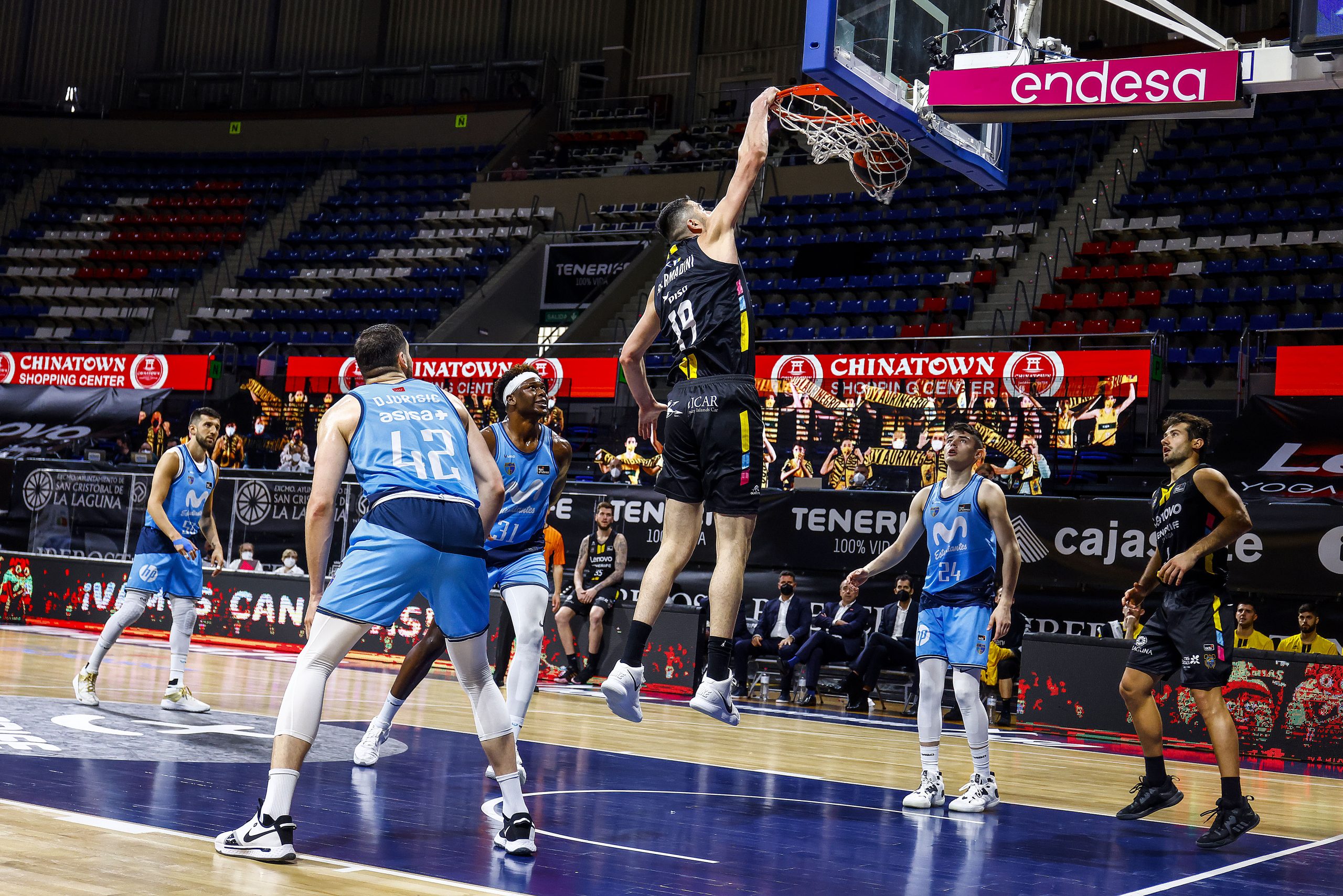 Con el guión pintado ya de aurinegro de arriba a abajo, el Canarias no hizo más que consolidar su triunfo tras el paso por vestuarios, permitiéndose incluso repartir esfuerzos y minutaje entre sus jugadores más utilizados en lo que va de curso. Solo los rebotes ofensivos de Ángel Delgado, los puntos de Djurisic y los fogonazos de Avramovic salpicaron de manera intermitente el dominio tinerfeño.