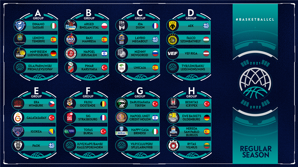 El equipo aurinegro, que estuvo representado en el acto por su director deportivo, Aniano Cabrera, ha sido encuadrado en el Grupo A de cara a la que será su sexta comparecencia consecutiva en el certamen continental. Además de los citados Sassari y Riesen, el rival de la previa saldrá de los siguientes equipos: el Parma ruso, el Hapoel Eilat israelí, el Levski Lukoil búlgaro, el SC Prometey ucraniano, el Le Mans francés y el BK Opava checo.