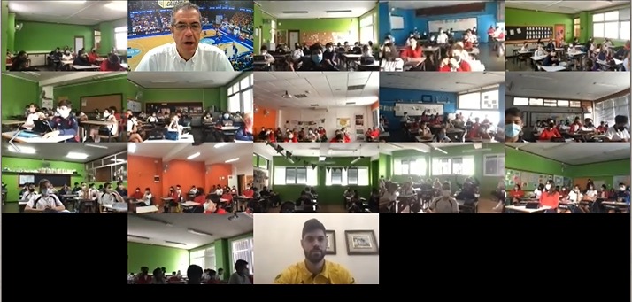 Invitados especiales.- Con Juan Méndez, responsable del Área de Eventos del club ejerciendo de maestro de ceremonias, cada visita contó además con un invitado especial, ya que los jugadores de la primera plantilla fueron rotándose para participar en la iniciativa, compartir una charla virtual con los alumnos y atender a sus inquietudes.