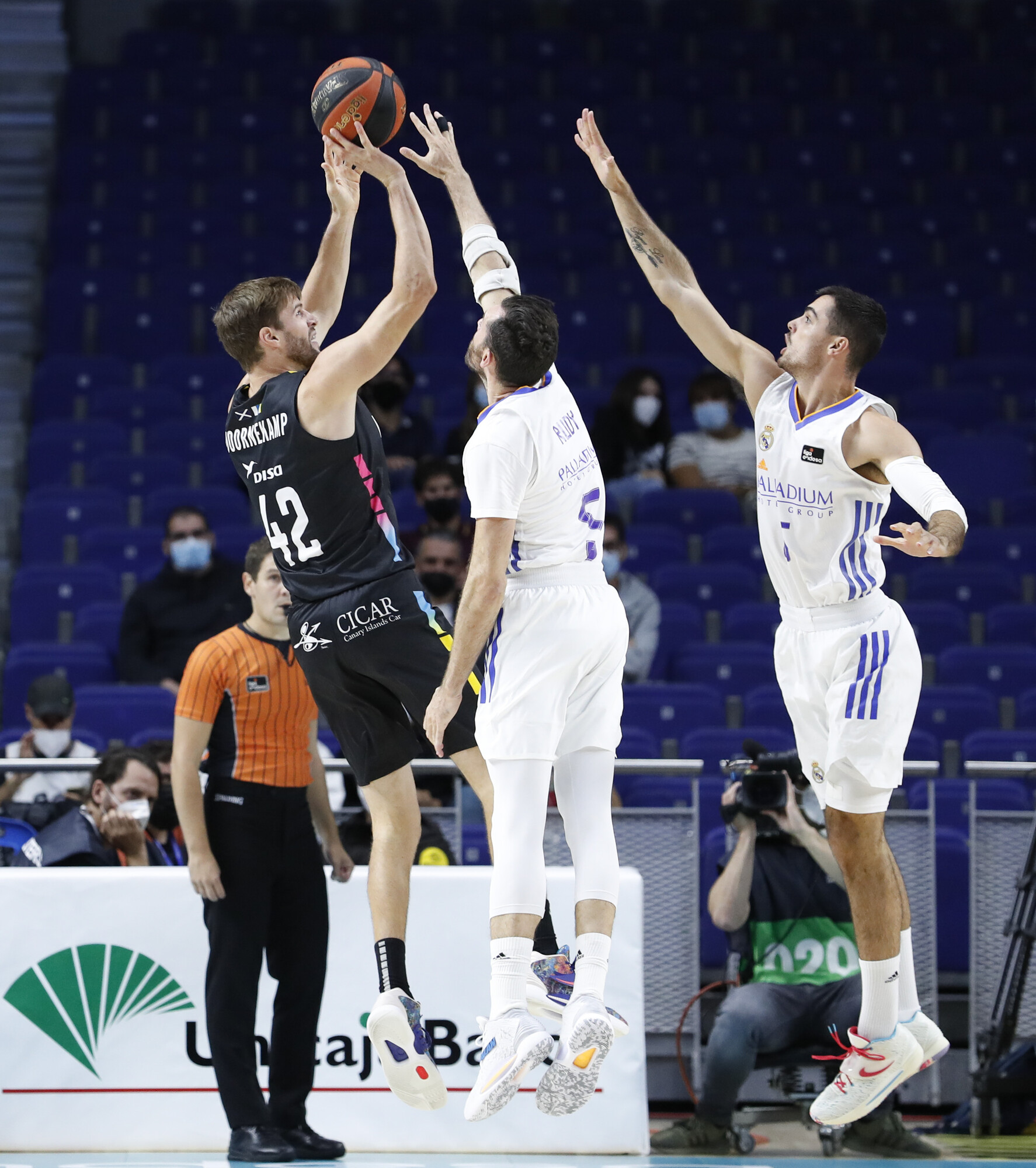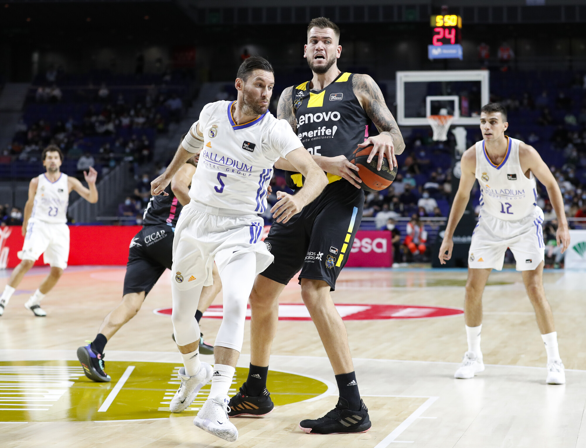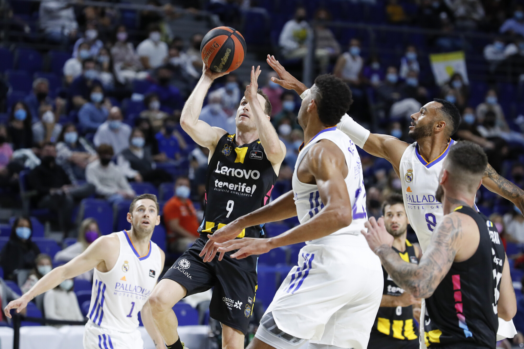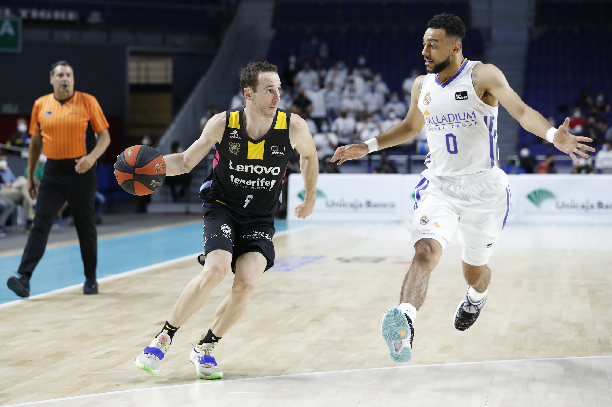 domingo, 3 octubre, 2021 - 08:10El Lenovo Tenerife cayó este domingo en su visita al líder Real Madrid (86-77), tras pelear casi hasta el final un partido que tuvo varias veces cuesta arriba. El grupo de Txus Vidorreta, en pleno proceso de reasignación de roles tras la lesión de su MVP, Gio Shermadini, fue de menos a más y trató de jugar sus bazas con valentía, pero acabó cayendo en el último cuarto ante el mayor poder interior de los anfitriones.