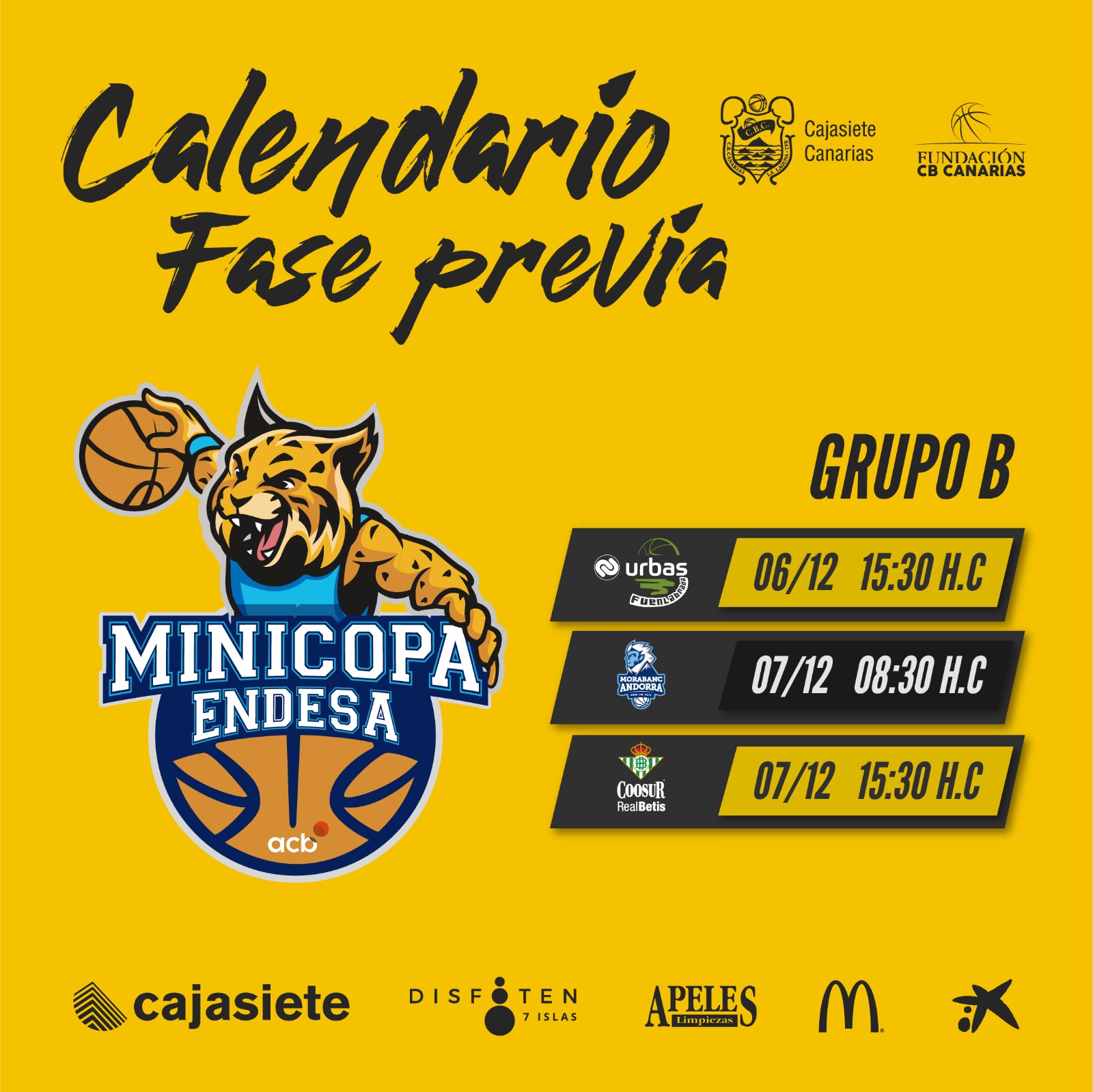 miércoles, 24 noviembre, 2021 - 12:11Ya hay hoja de ruta para el Cajasiete Canarias en la Fase Previa de la Minicopa Endesa, que se disputará en L’Alquería del Basket de Valencia, del 6 al 8 de diciembre.