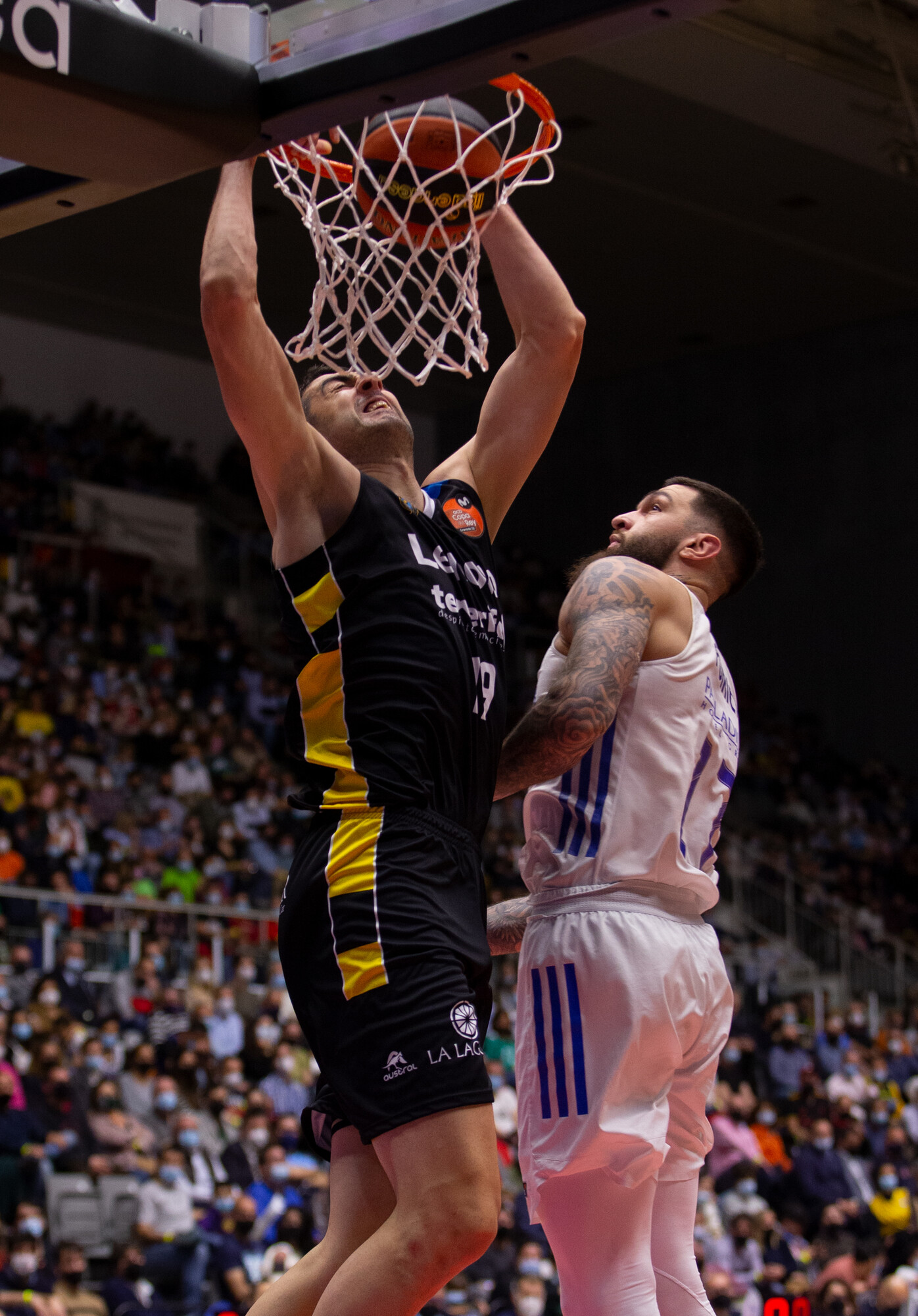 El guión del partido mantenía los mismos parámetros (50-38, min. 20) y la tercera falta de Gio al poco de iniciarse el tercer cuarto condicionaba otra vez a los laguneros, situación que aprovechó Tavares para marcar terriorio en la pintura. A partir de ahí, el Lenovo Tenerife fue un querer y no poder ante un adversario que sacó a relucir su arsenal de recursos.