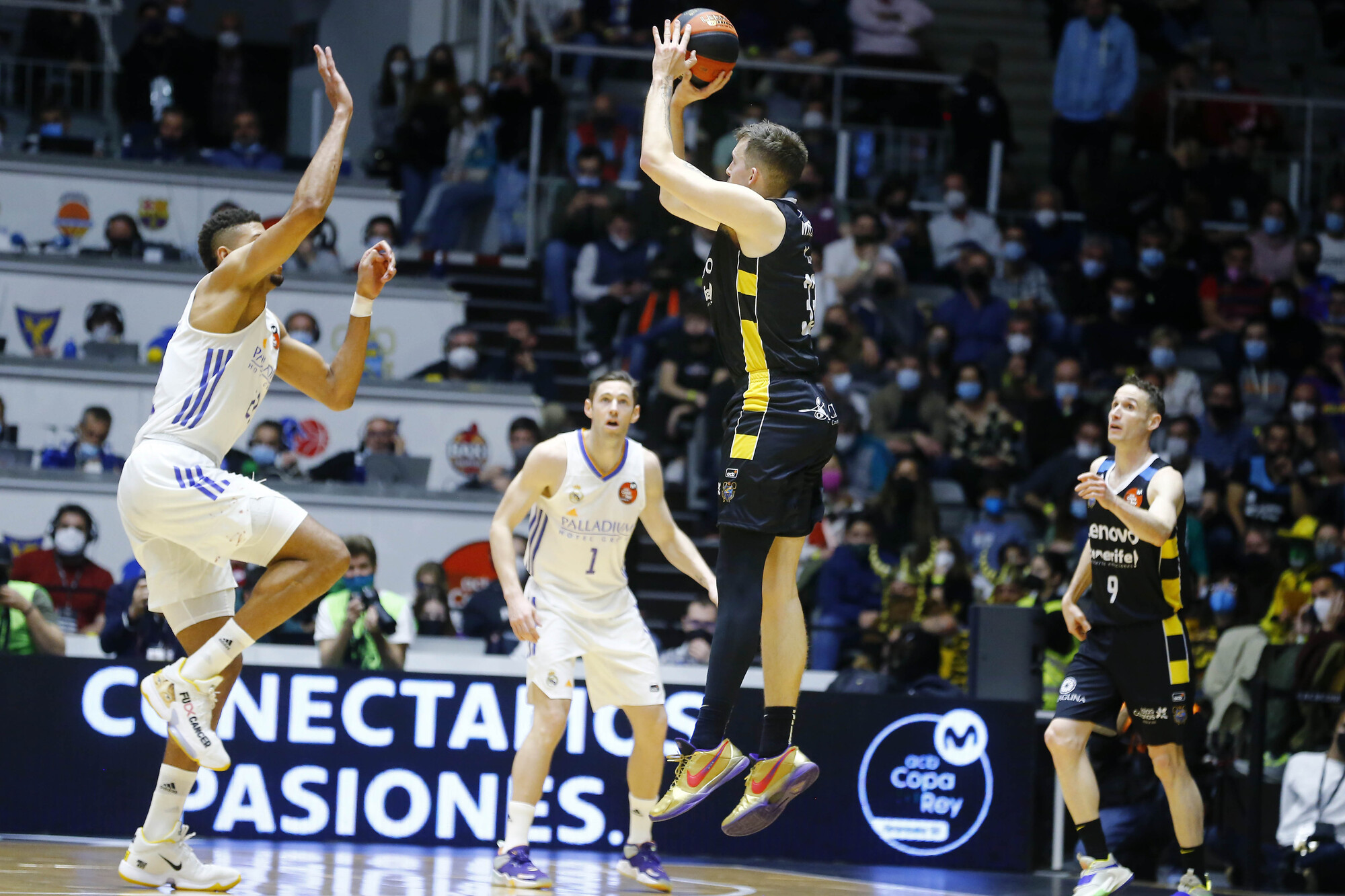 No pudo ser. El Lenovo Tenerife cedió este sábado ante el Real Madrid en las semifinales de la Copa del Rey (94-74), en un partido que se le puso cuesta arriba desde el inicio. El esfuerzo de los aurinegros por equilibrar la balanza cayó en saco roto ante un rival, que exhibió el potencial que le ha situado al frente de la Liga Endesa y colíder de la Euroliga.