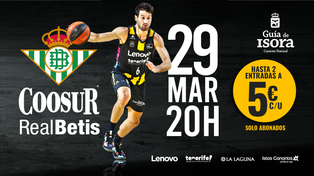 El Lenovo Tenerife ha activado una nueva promoción, en este caso exclusiva para sus abonados 21/22. La iniciativa tiene que ver con el partido que el primer equipo aurinegro disputará el martes día 29 de marzo, ante el Coosur Real Betis (Santiago Martín, 20:00 hora canaria), choque aplazado en su día y correspondiente a la jornada decimoctava de la Liga Endesa.