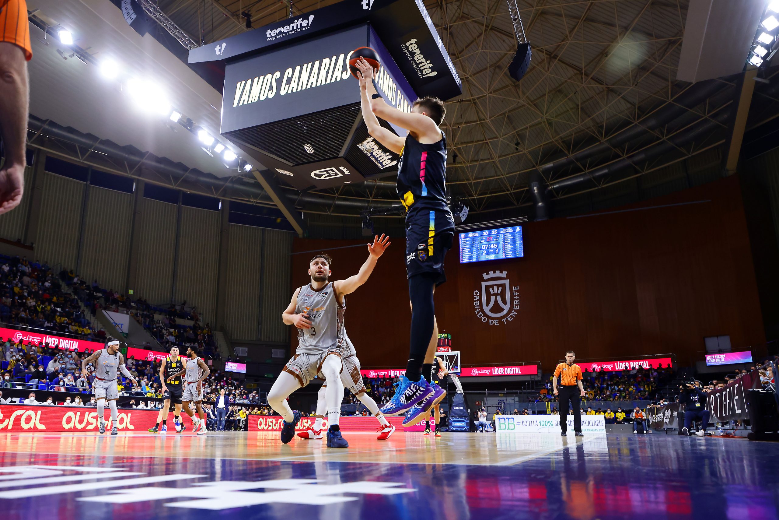 Salió con todo el conjunto insular, que ganó de entrada la batalla del rebote, circuló el balón con mucho criterio y comenzó a martillear a su adversario desde el 6,75 (15-7, 20-13, 23-16). Las segundas opciones en ataque (cinco rebotes ofensivos en el primer cuarto) y los triples (hasta ocho jugadores diferentes acabaron aportando hoy desde la larga distancia) pusieron en serios aprietos a los burgaleses.