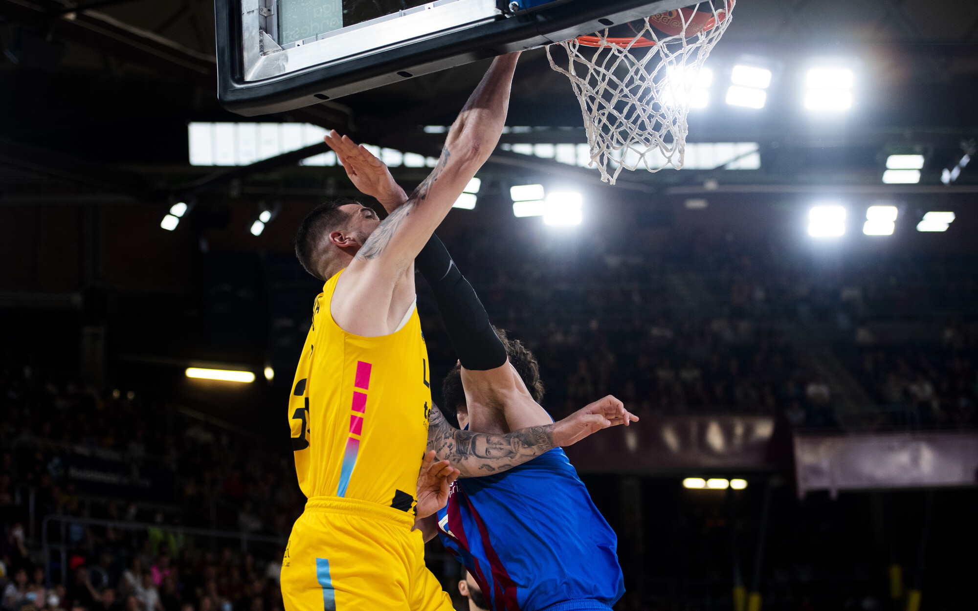 El Barça estiró su despertar hasta un arreón de 14-2 para el 18-11; pero el Canarias respondió con entereza. Un 0-10 cimentando en dos triples de Wiltjer y Salin y en un par de acciones de mérito de Gio y Bruno situaban a los insulares por delante (18-21). Lo intentó el cuadro anfitrión, pero fue el Lenovo el que mejor se manejó en un pulso intenso y condicionado por el quehacer atrás de los dos contendientes (26-27, al descanso).