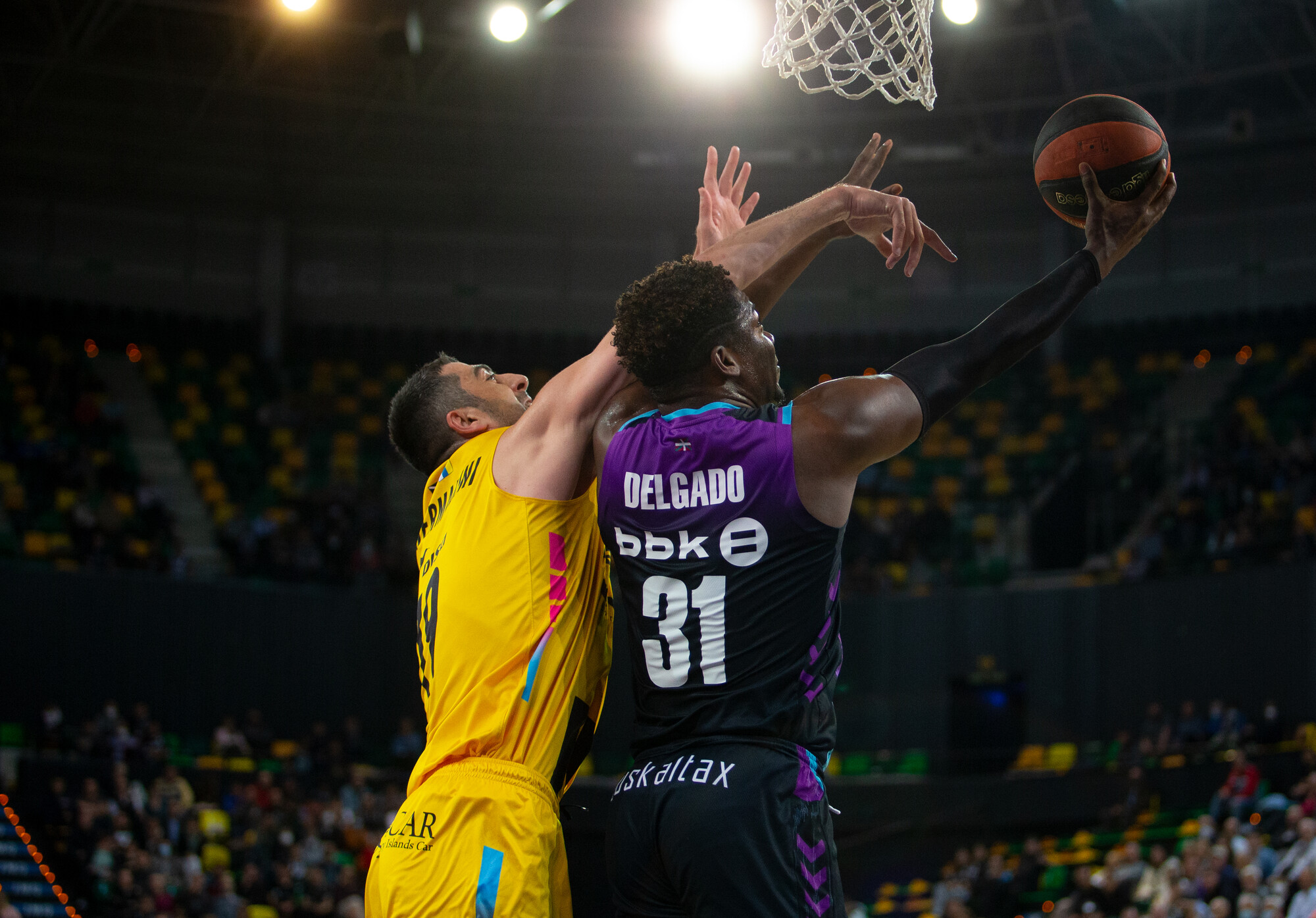 El grupo de Txus Vidorreta firmó una buena puesta en escensa, con sendos triples de Aaron Doornekamp y Bruno Fitipaldo (0-6), pero conforme crecía el partido el conjunto vasco ganaba en confianza con las acciones interiores de Delgado. Las segundas opciones de los locales (hasta siete en el primer cuarto) impedían que el buen hacer canarista en ataque tuviera el mejor impacto en el electrónico.