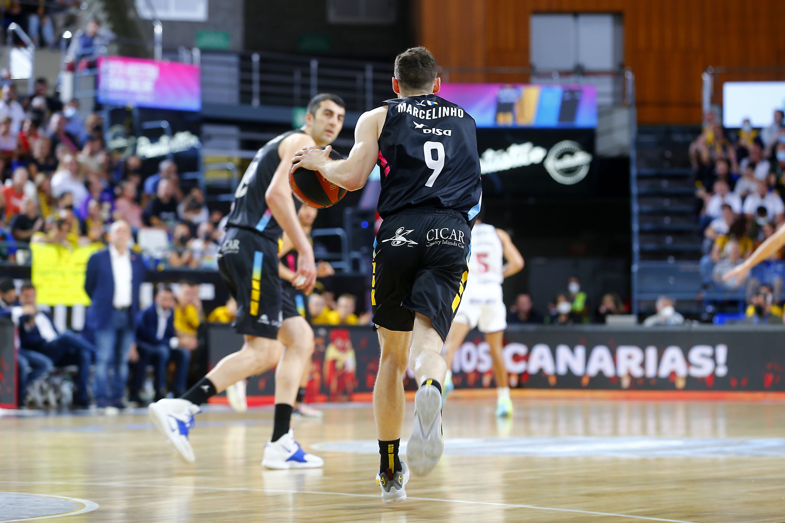 No fue bueno el inicio de los tinerfeños, que dieron demasiadas concesiones en el rebote defensivo y no estuvieron finos desde el 6,75. Pese a todo, la escuadra insular no tiró la toalla y trató por todos los medios de meterse en partido. Un arreón de coraje de Aaron Doornekamp, 3+1 incluido; y la calidad de Marcelinho Huertas en la dirección cimentaron un parcial de 8-0 y estrecharon el cerco (25-32).