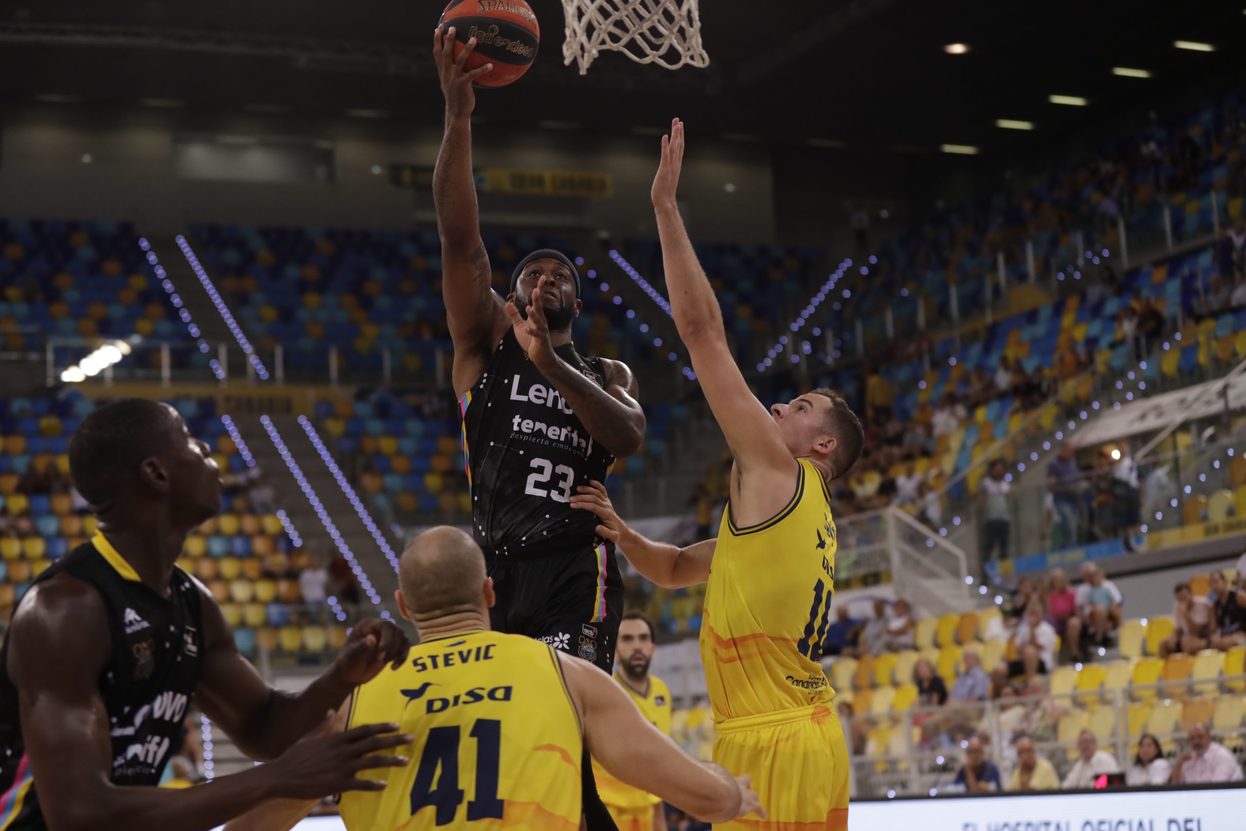 Con el rebote bien cerrado, los principales baluartes locales bien sujetos y Cruz haciendo daño al cinco, el Lenovo Tenerife se sintió cada vez más cómodo. Un 0-8 mediado el segundo cuarto (23-34) supuso ya un aviso serio a navegantes. Eso y el buen trabajo atrás lanzaron a los laguneros, que se fueron al receso 14 arriba (32-46).