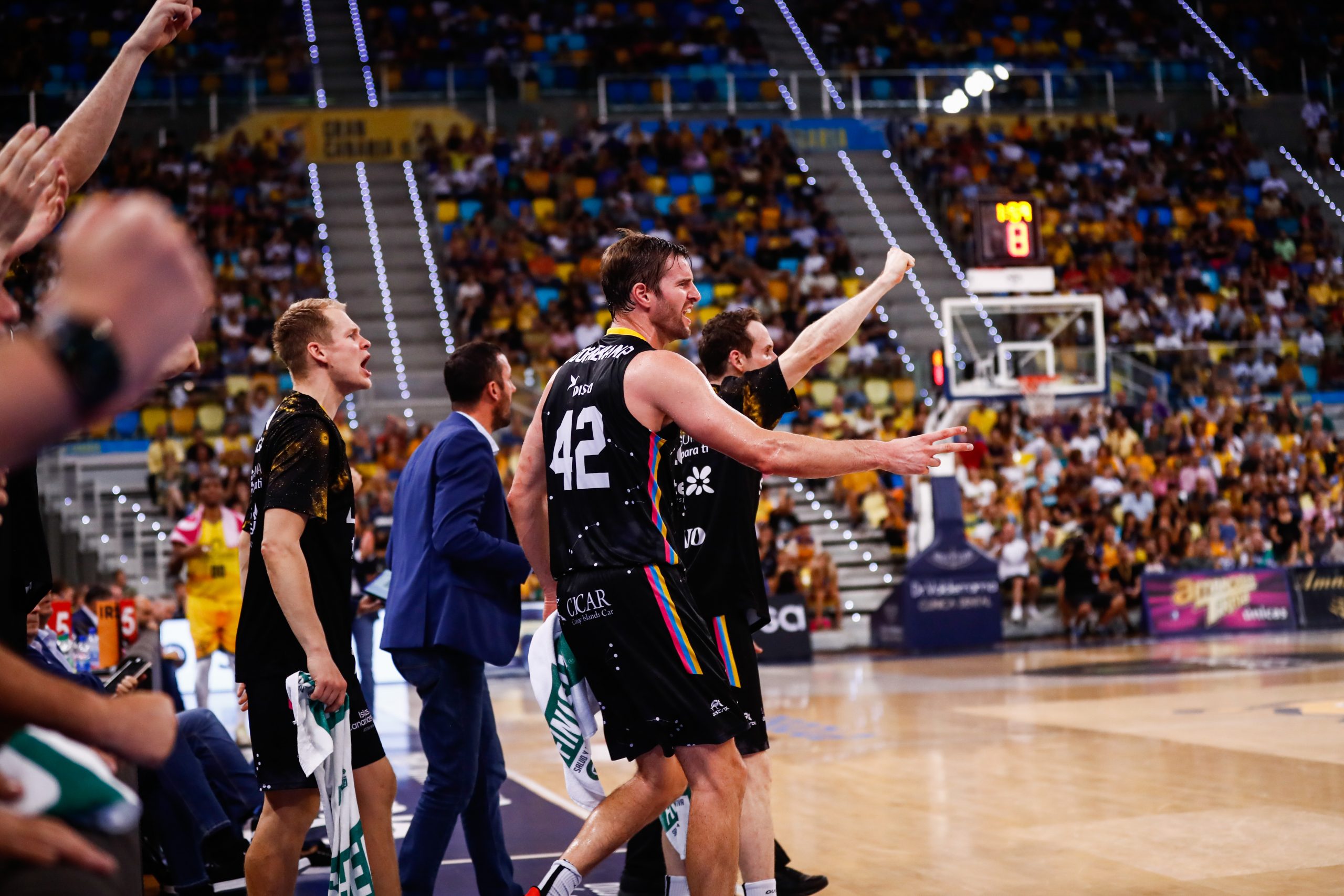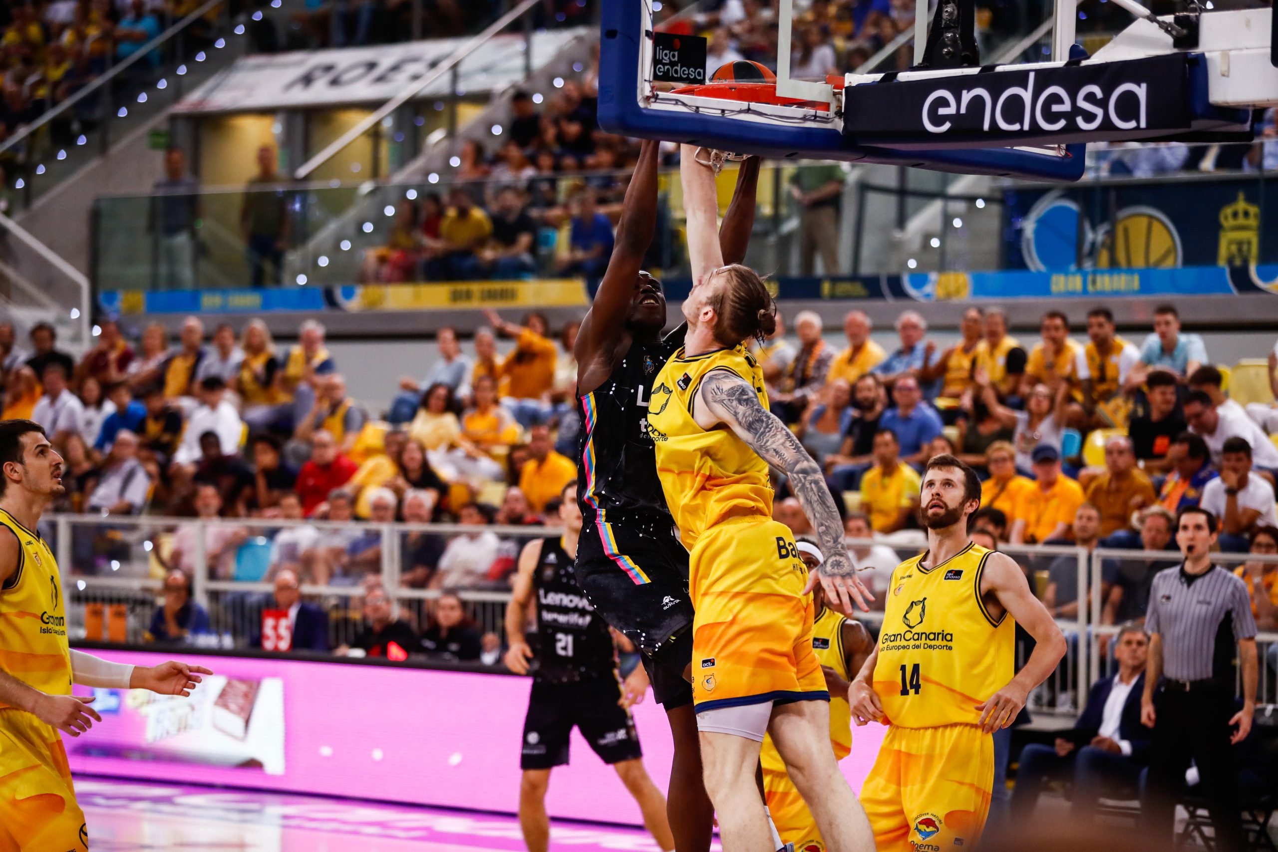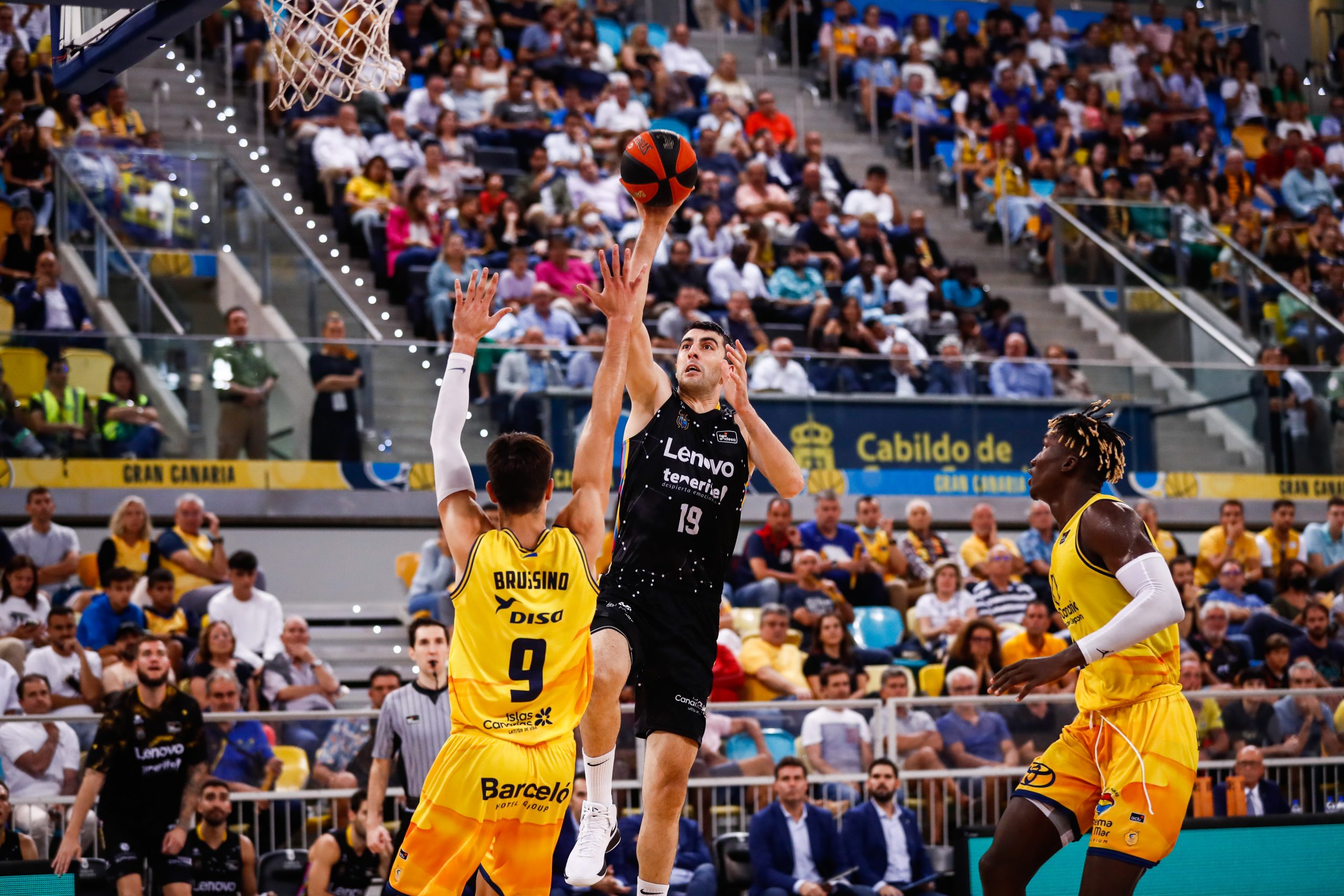 Costó lo suyo contrarrestar a los anfitriones, que salieron más enchufados y aprovecharon el acierto inicial en el triple de Nico Brussino (3/3), más un par de rebotes ofensivos, para coger las riendas del electrónico (10-4, 15-10, 23-15). El Canarias se amparó entonces en los balones interiores a Gio para tratar de equilibrar la balanza, si bien iniciado el segundo cuarto se vio ya diez abajo en el marcador (34-24).