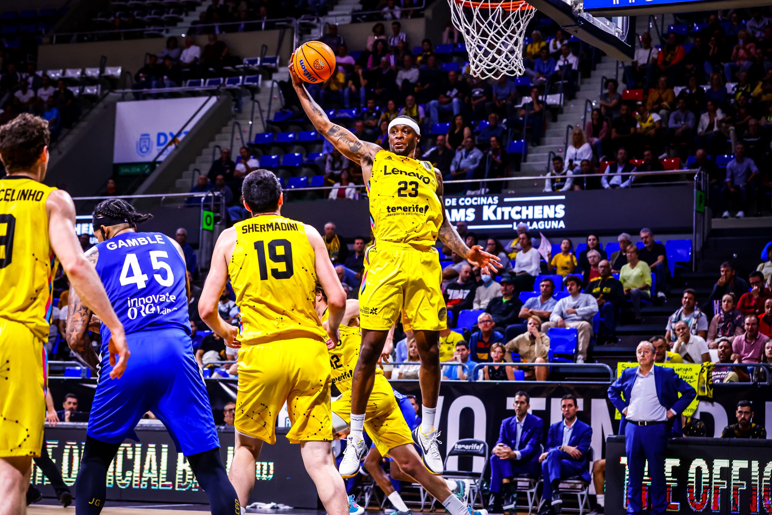 Un triple sobre la bocina de Bruno Fitipaldo para el 34-14 ponía la guinda a un cuarto casi perfecto, donde la fortaleza defensiva de los anfitriones frustraba a un rival, el israelí, blando atrás y sin capacidad de reacción. Ni siquiera la aparición de Maurice Kemp y Van Vliet impidió que el Lenovo Tenerife mantuviera su fluidez ofensiva (11/13 en tiros de dos al descanso y 9/20 en triples) y se fuera a la pausa con un claro 52-27.