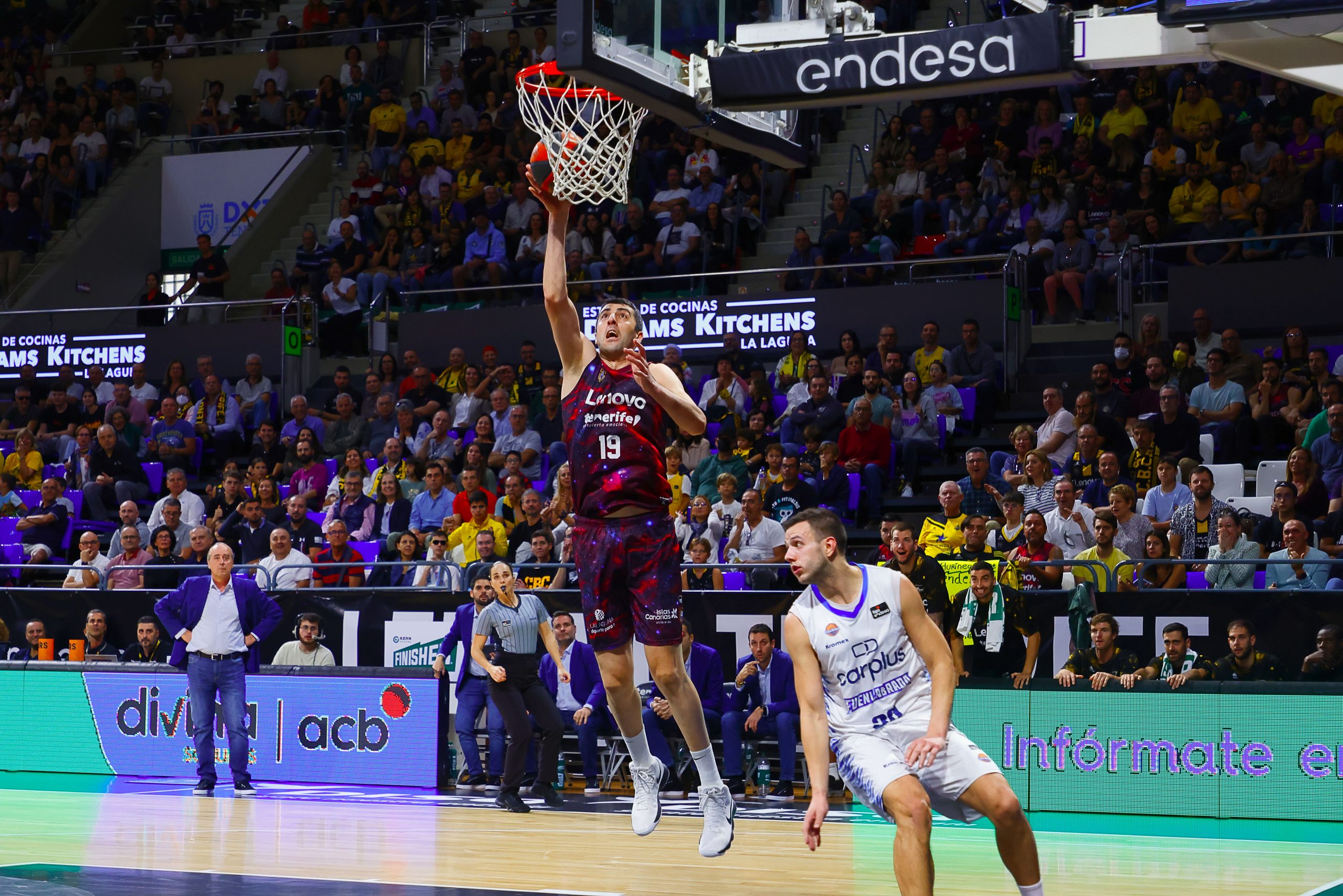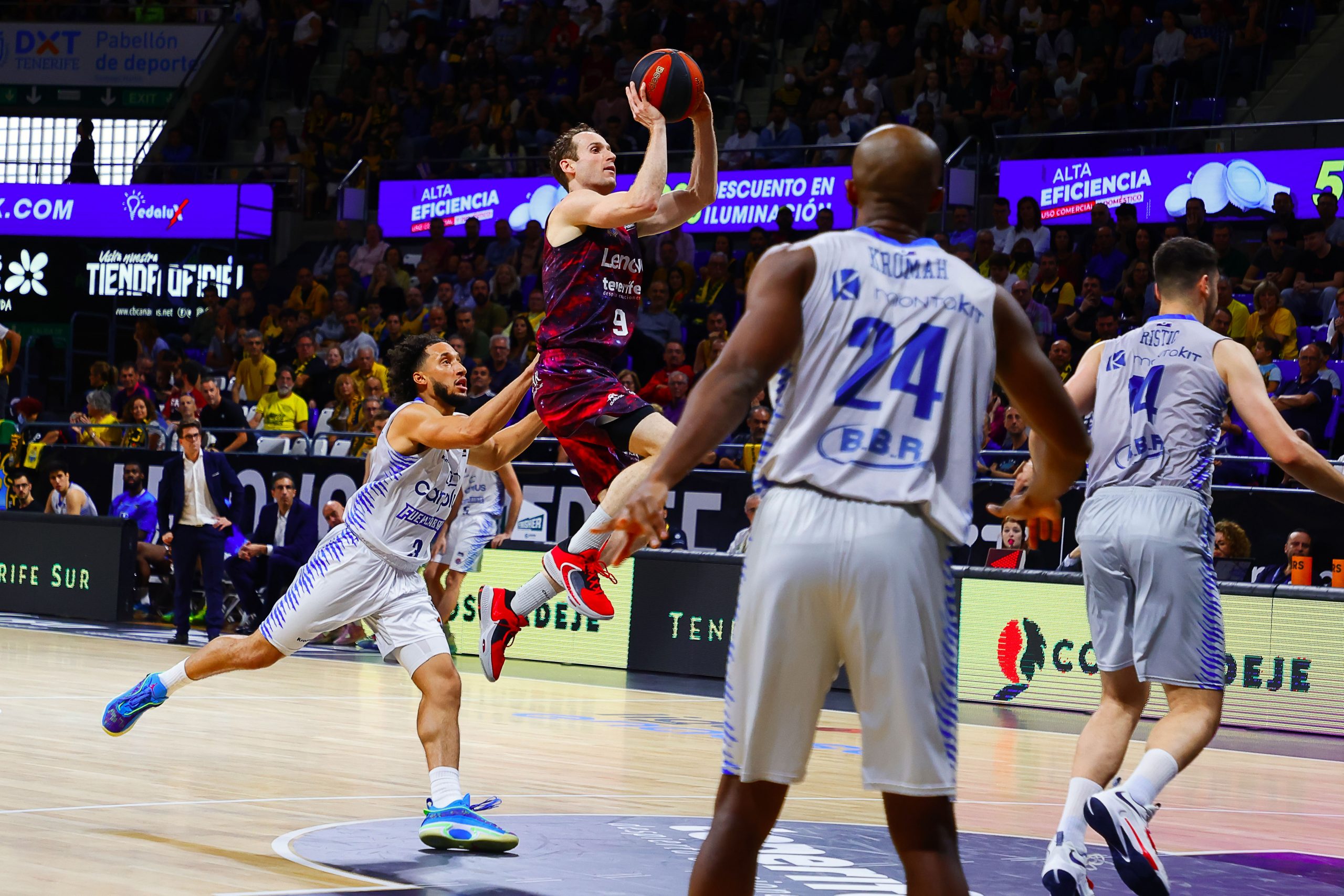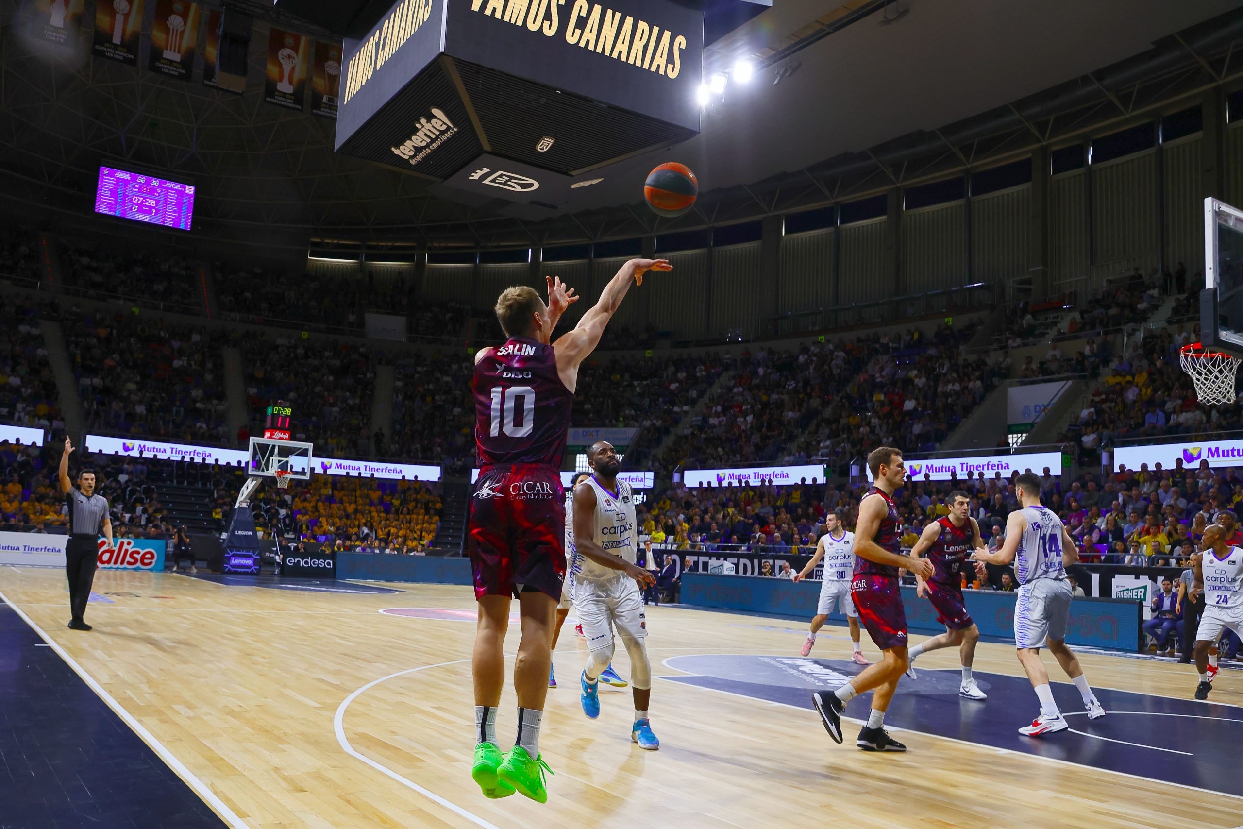 En el tercer lleno ACB consecutivo de la temporada, la afición canarista volvió a disfrutar con un equipo, el tinerfeño, que aguantó con paciencia ante un Fuenla correoso para dinamitar el partido a la vuelta de vestuarios. La fortaleza atrás del bloque y la aportación del EQUIPO en su sentido más amplio de la palabra (hasta seis jugadores en dobles dígitos de valoración y 123 créditos de nota global) explican un nuevo triunfo insular.