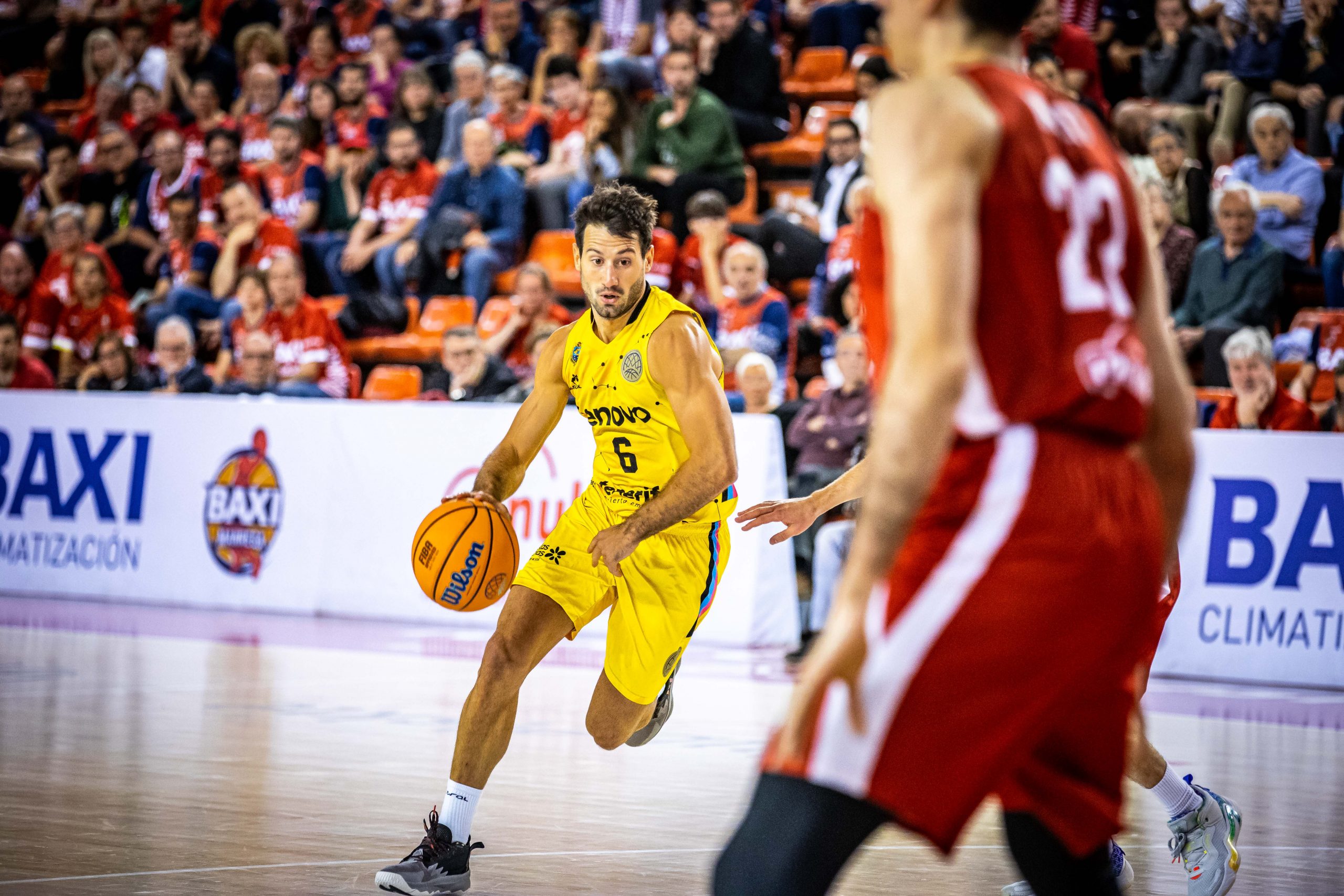 Arrancó muy metido el conjunto insular, que movió el balón con mucho criterio, anotó los tiros abiertos y aprovechó la determinación de Bruno Fitipaldo (12 puntos en el primer cuarto) y Marcelinho Huertas para disponer de varias rentas en el electrónico (9-15, 13-20, 18-25, 18-27).