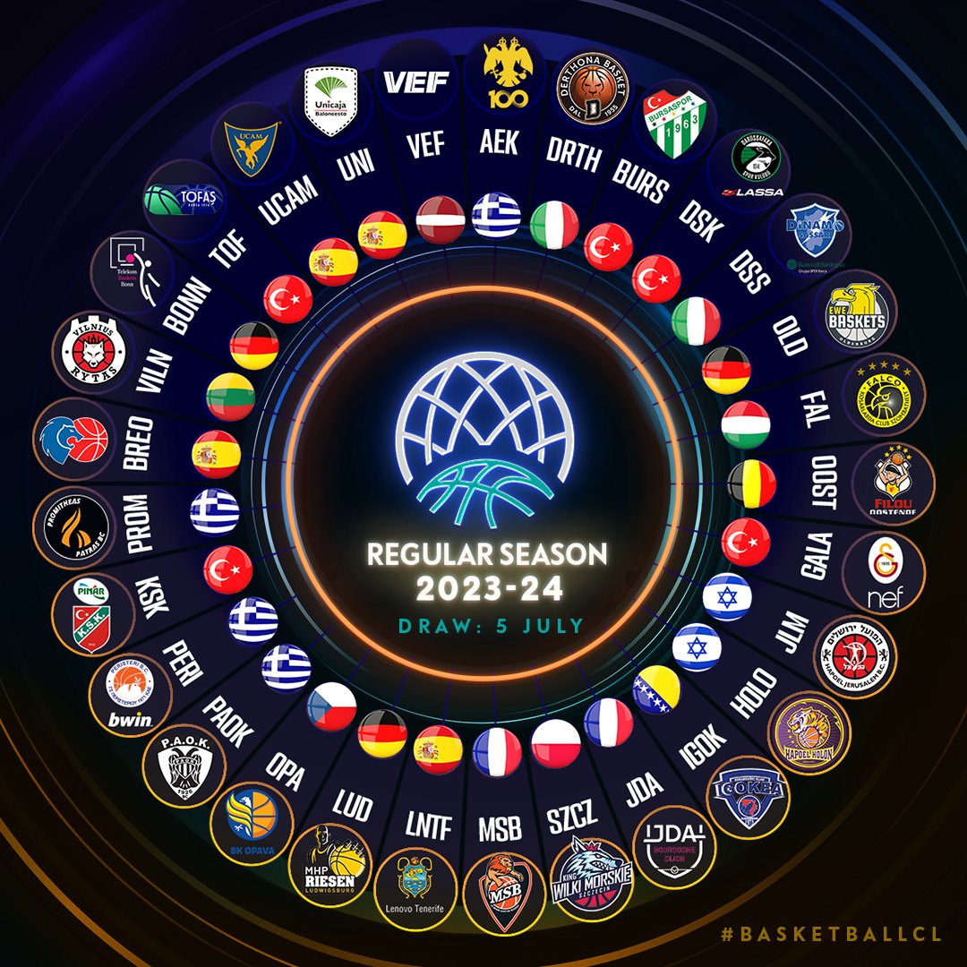 martes, 27 junio, 2023 - 07:06La Basketball Champions League 2023-24 toma forma. La máxima competición de clubes de FIBA Europa anunció en la tarde de este martes los clubes admitidos para el próximo torneo, tras estudiar las 63 solicitudes tramitadas. Un total de 28 países, incluidos 14 campeones de liga, estarán representados en la octava edición del certamen.