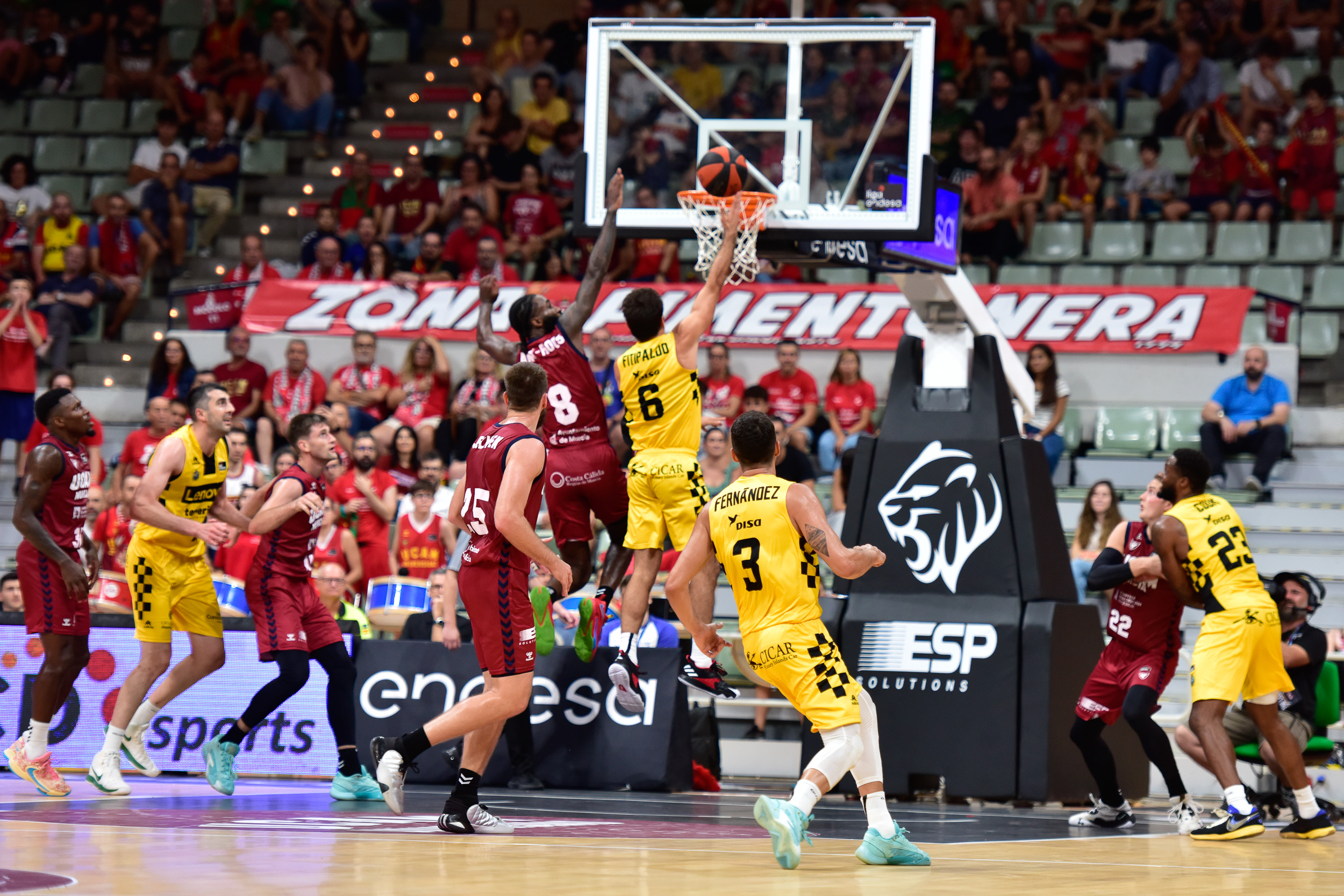 Comenzó con mal pie el conjunto insular, que pese a los libres iniciales de Elgin Cook, no encontraba su ritmo ni igualaba la intensidad de los murcianos. Encajó entonces el Canarias un 7-0, lo que obligó a Txus Vidorreta a pedir tiempo muerto (7-2, min. 4).