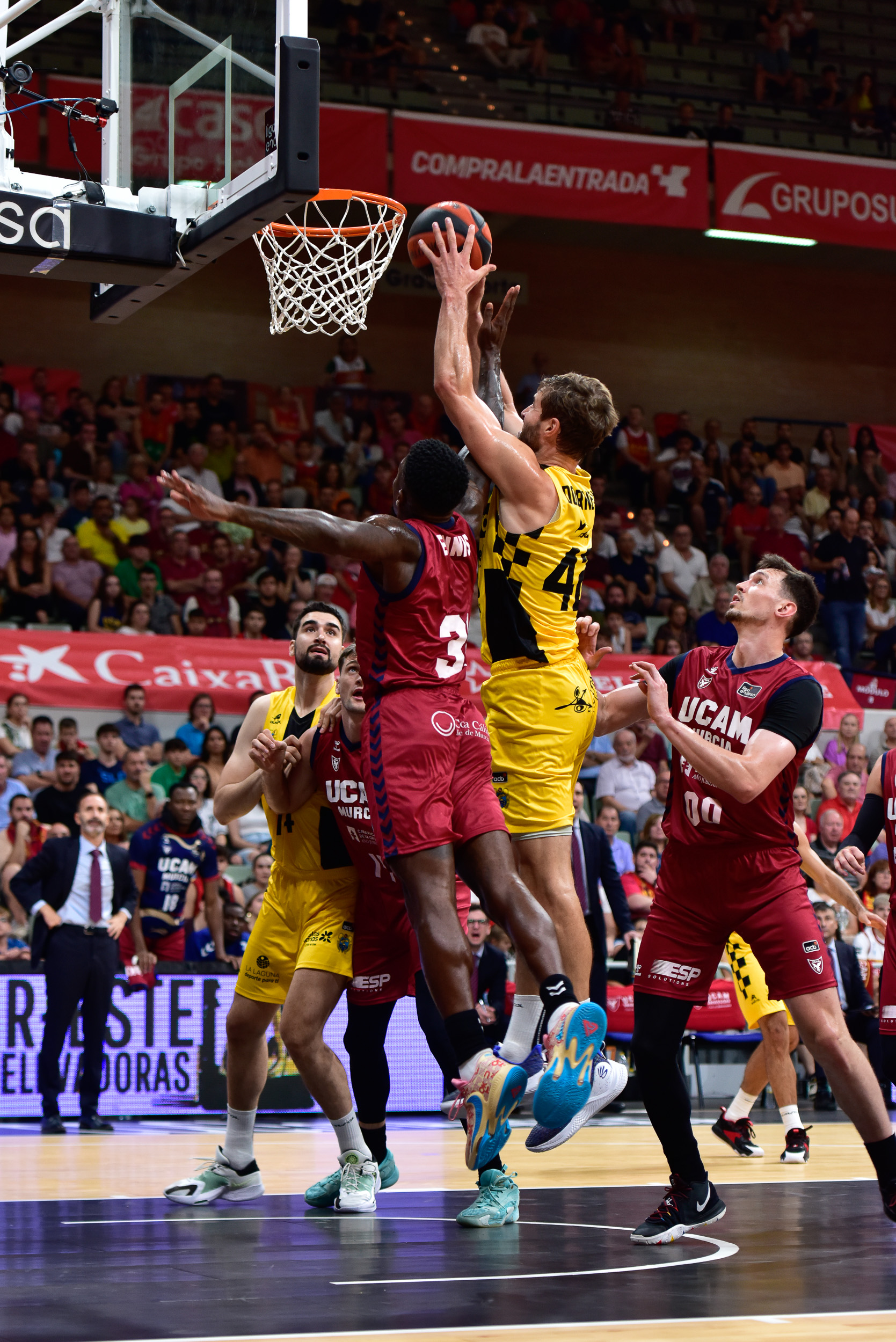A la vuelta de la pausa, el UCAM Murcia controló mejor el rebote y se amparó en un inspirado Simon Birgander para recortar distancias y llevar de nuevo el encuentro al alambre (55-55). Los de Sito Alonso anotaban demasiado fluido en pintura, pero el cuadro lagunero aguantaba como podía la remontada local (55-57, min. 30).