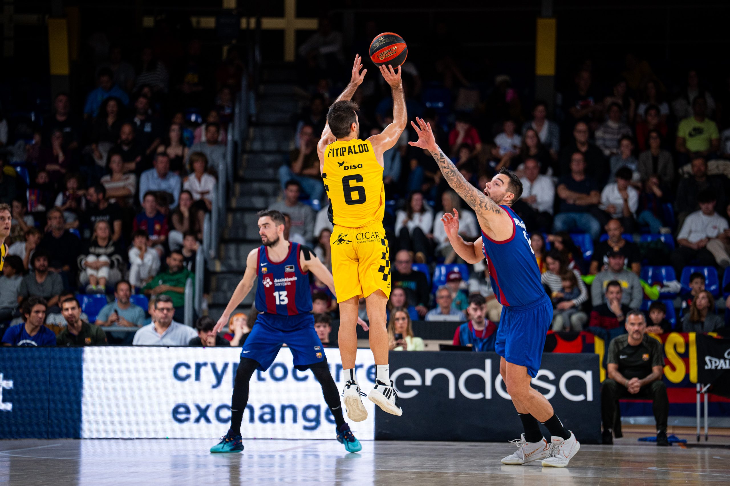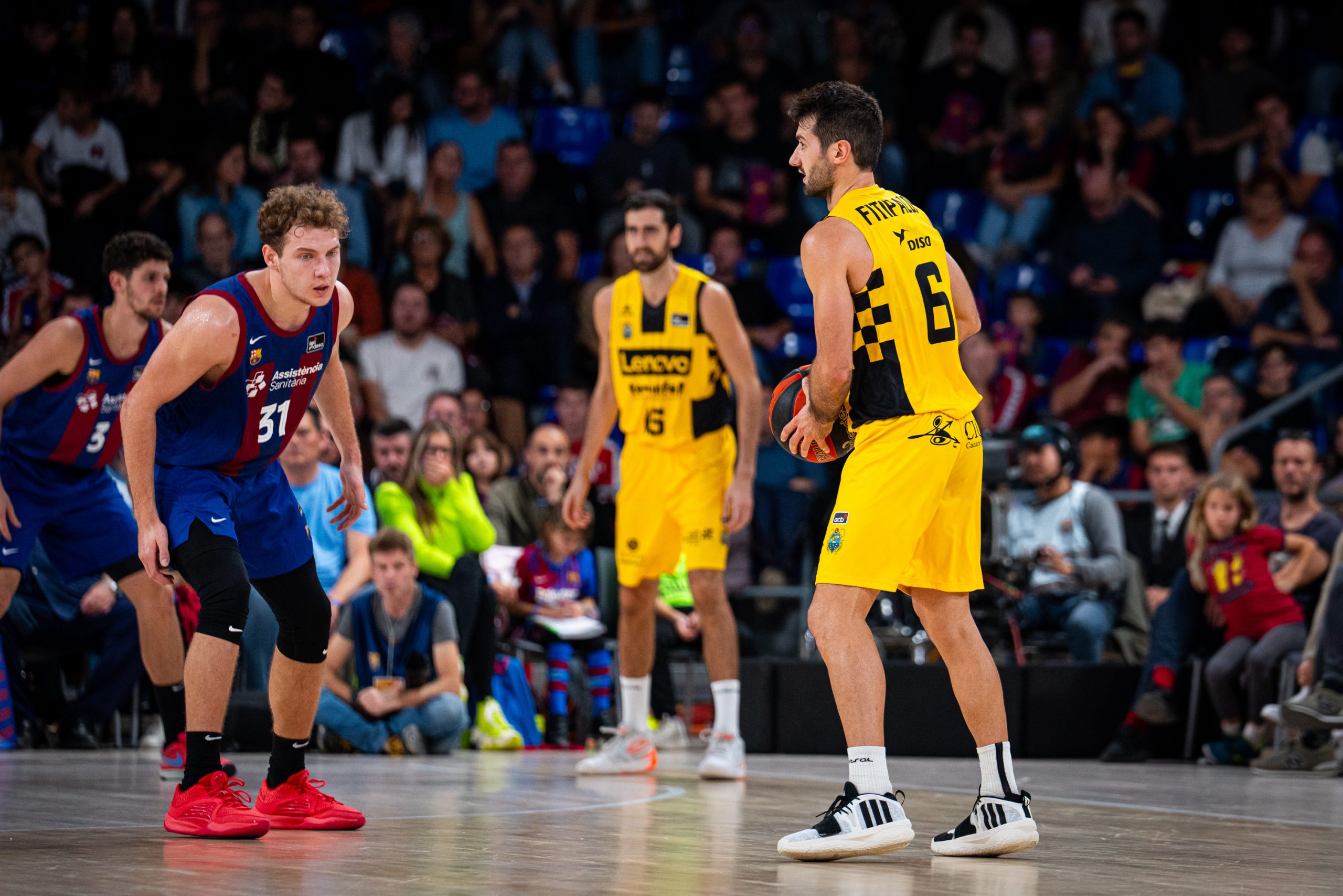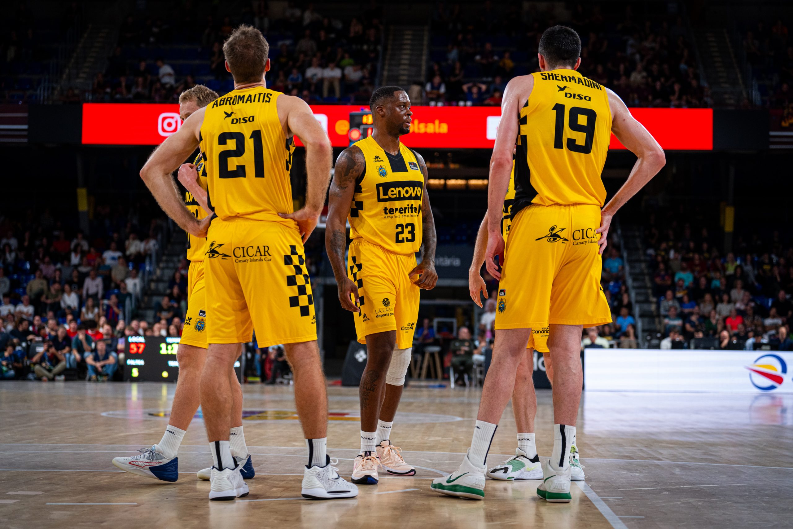 Lejos de verse intimidado por la profundidad de banquillo de los catalanes (24 puntos de sus teóricos suplentes al intermedio, por 12 de los visitantes), el Lenovo Tenerife se mostró muy sólido atrás y trabajó para apretar el partido: 31-28, tras triple de Tim Abromaitis.