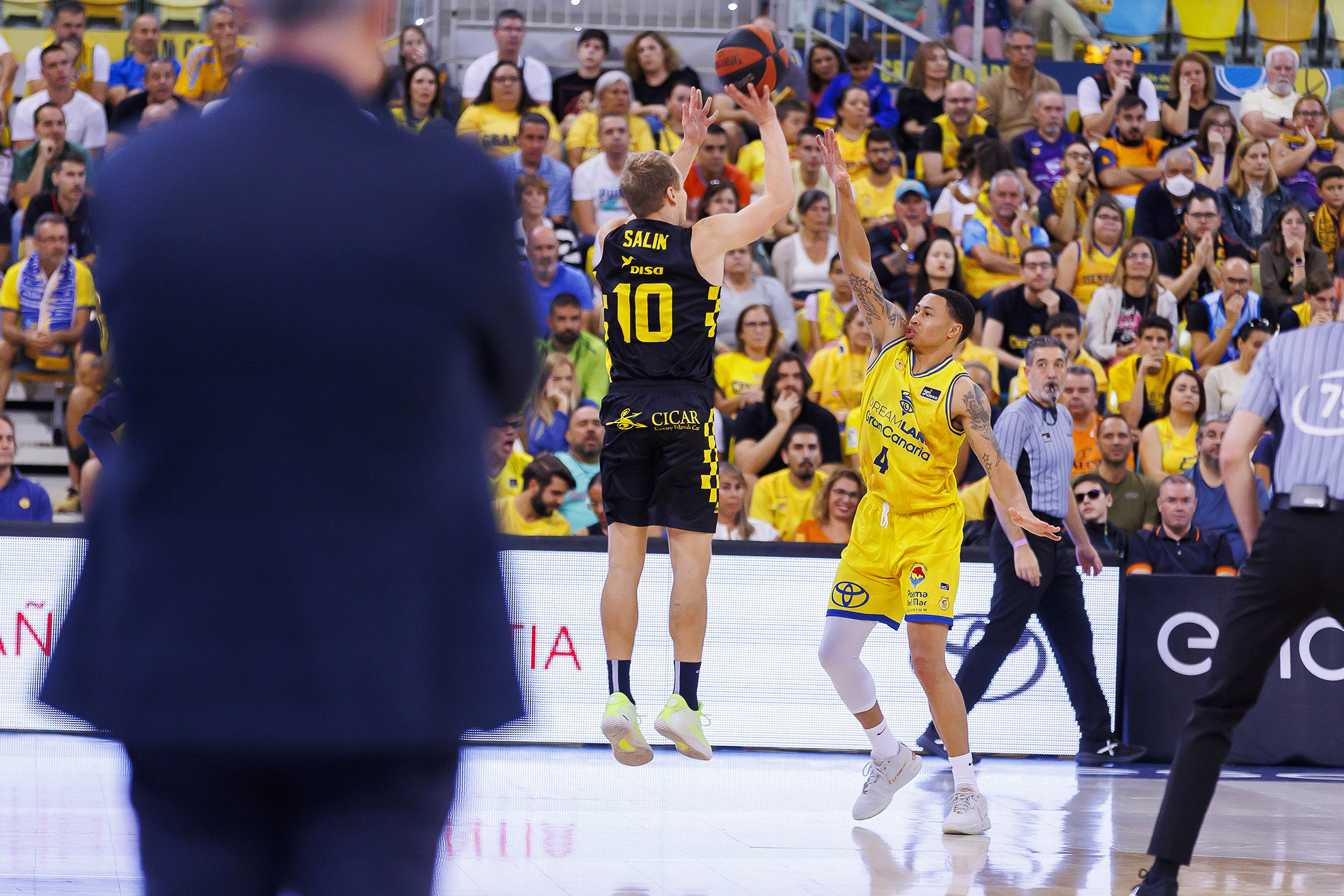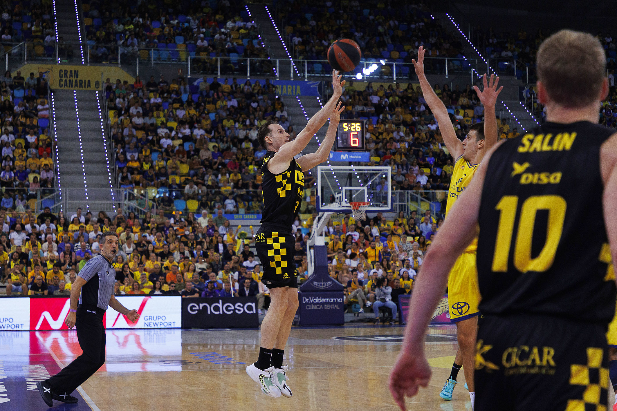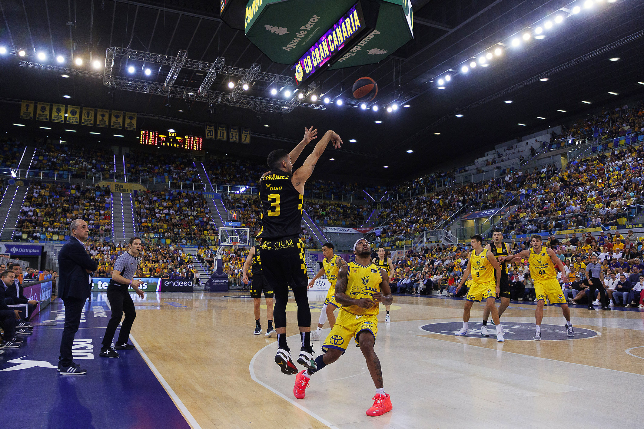 Arrancó el choque con excesivos parones y con algún intento local por abrir brecha (7-4, 14-10), pero el Canarias se fue haciendo fuerte desde la defensa para coger las riendas del electrónico. Un par de robos con finalizaciones de Joan Sastre y dos triples consecutivos de Bruno Fitipaldo propiciaron un parcial de 0-10 y permitieron a los laguneros dar el primer aviso serio a navegantes (16-26, min. 12) y lo más importante: imponer el ritmo que más le convenía.