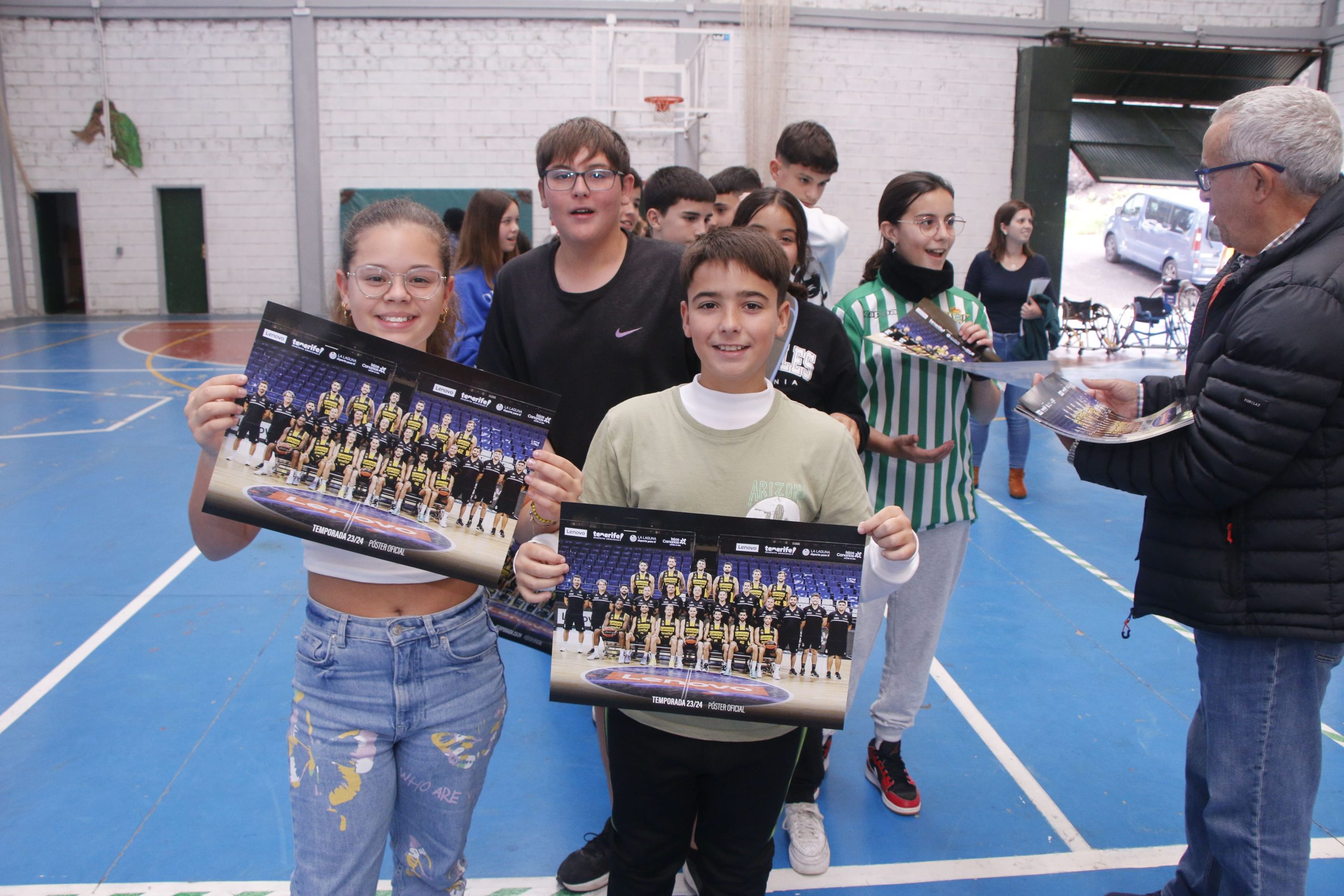 Al final del encuentro, la Fundación y el ADEIN regalaron al alumnado un póster de la primera plantilla del Lenovo Tenerife y al equipo directivo unos balones de recuerdo de la visita.