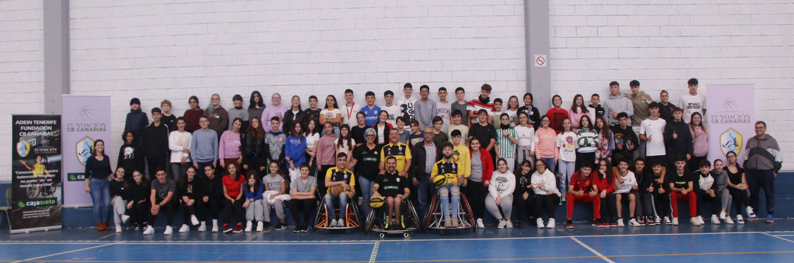 Relacionado con dicha celebración, este pasado sábado se desarrolló otro acto en el descanso del encuentro de la Liga Endesa entre el Lenovo Tenerife y el Obradoiro CAB, consistente en la presentación de la plantilla 23/24 del ADEIN Tenerife Santa Cruz Fundación CB Canarias, club representativo en la Primera División del baloncesto en silla de ruedas. Medio centenar de alumnos del IES El Tanque, invitados al partido, se unió al aplauso que la afición aurinegra brindó al equipo cuando saltó a la cancha.