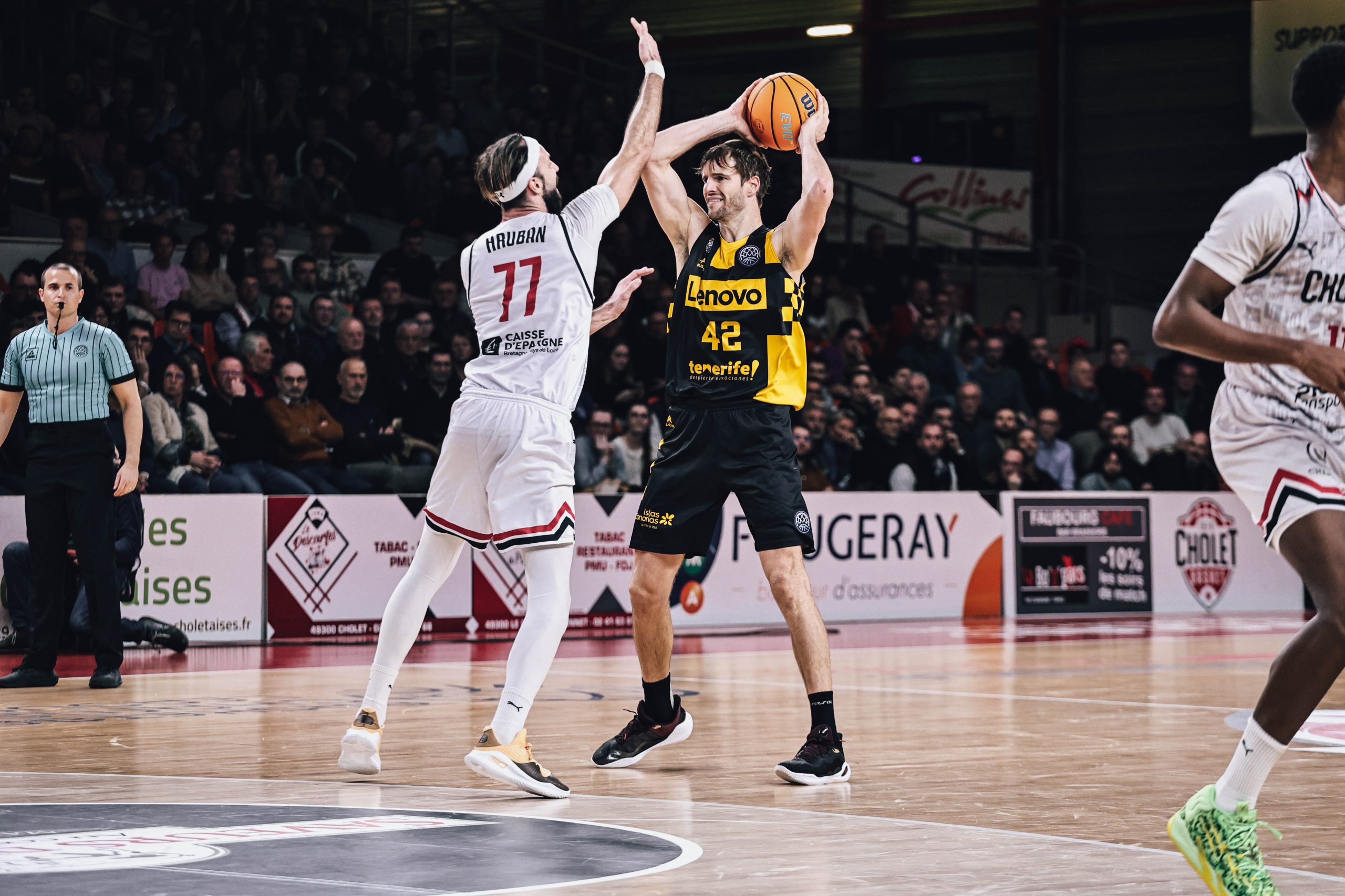 Las continuas visitas al tiro libre del Cholet ponían por momentos en aprietos al Lenovo Tenerife (52-49), pero los de Txus Vidorreta aceptaron el desafío con entereza. Dos triples consecutivos de Édgar Vicedo cuando más apretaban los anfitriones camino del último cuarto o el buen hacer de Marce y Bruno en la dirección permitían a los aurinegros enfilar el final con opciones, no sin sufrir algún susto por el camino, como un golpe en el gemelo izquierdo del base uruguayo.