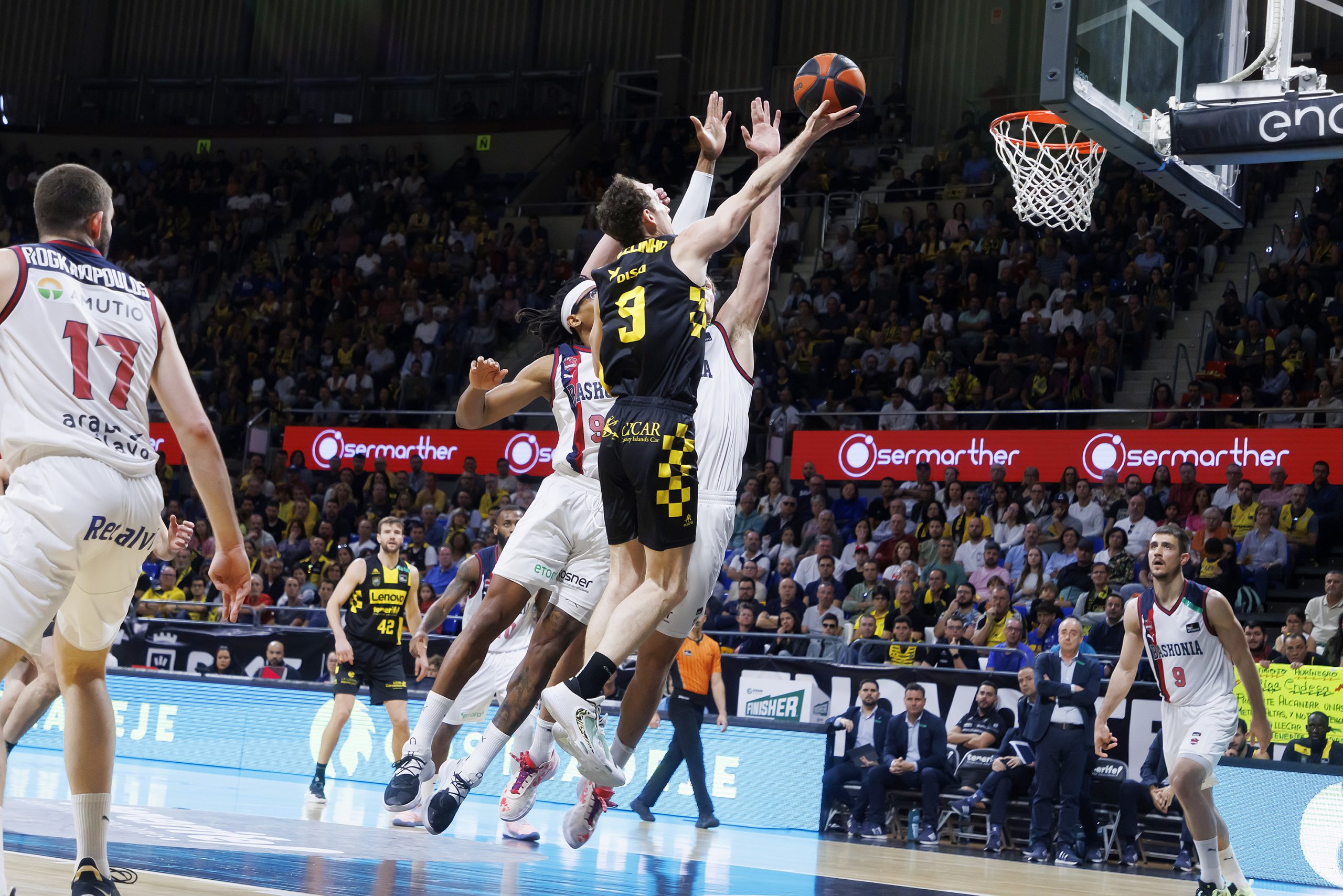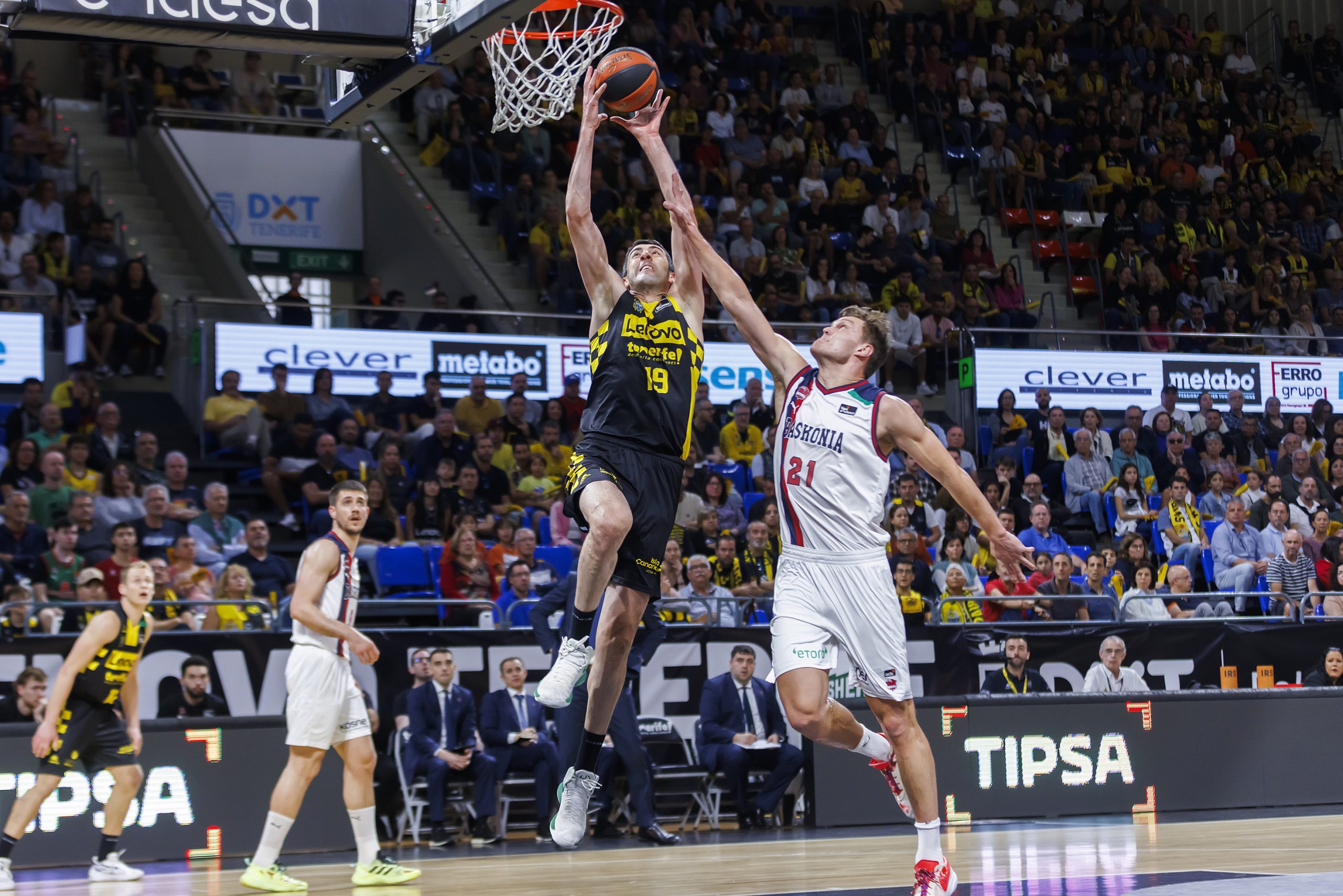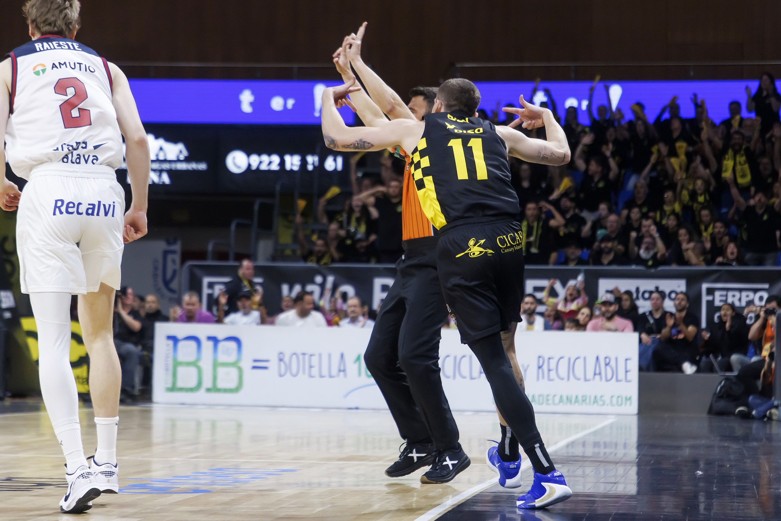 Un tercer cuarto sublime de Tim Abromaitis al cinco, la fortaleza atrás del bloque y varias acciones destacadas de Fitipaldo o Sastre, más el ritmo impuesto por Marce, dispararon la renta canarista hasta los quince puntos (75-60, min. 31). Intentó reaccionar el conjunto vasco, con un parcial de 0-7, pero el equipo tinerfeño respondió con entereza y disipó cualquier duda.