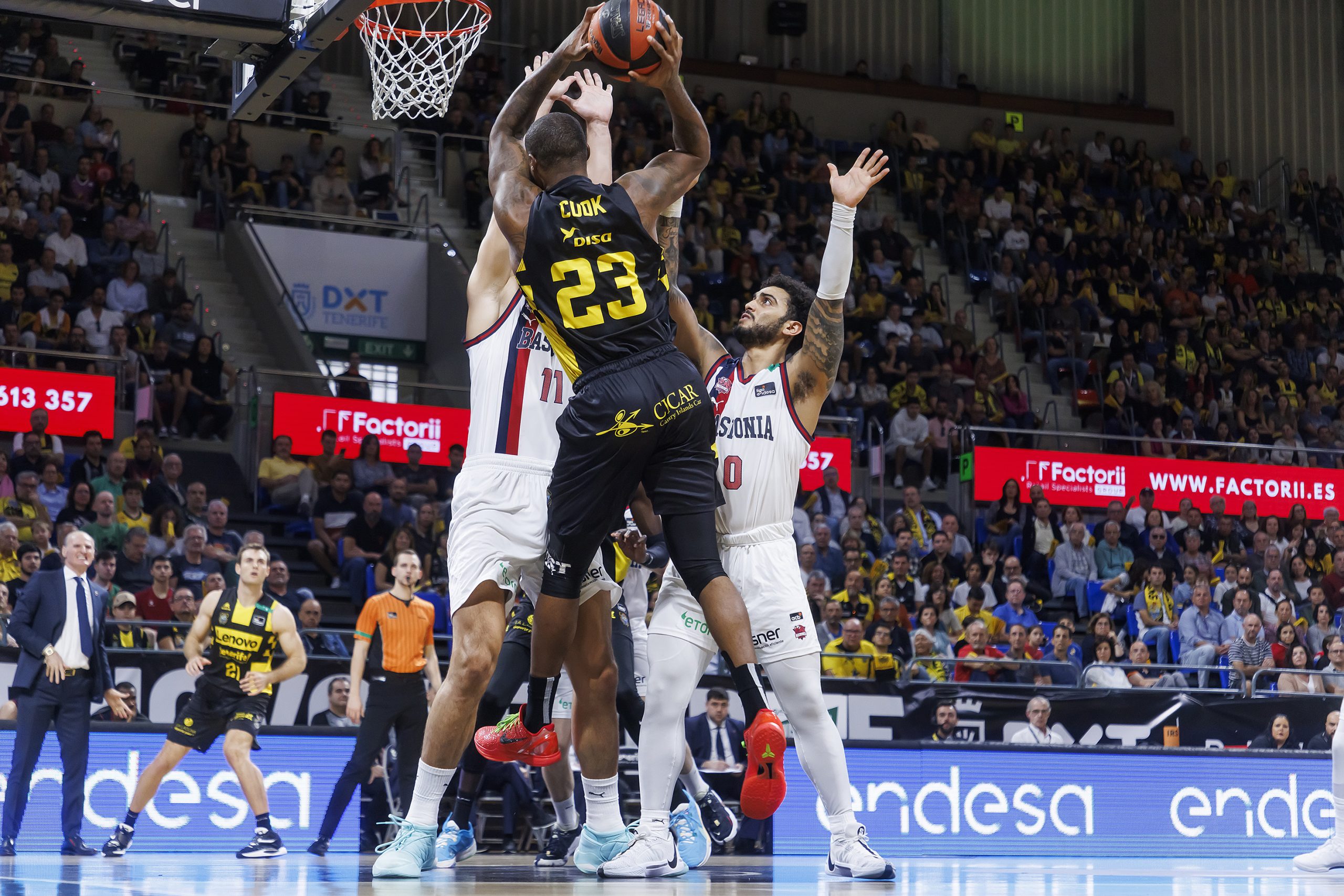 Lejos de rebajar sus pretensiones, el Canarias crecía en confianza con el paso de los minutos y fue con todo a por la victoria tras el paso por vestuarios (46-41, min. 20). Con varios de los baluartes baskonistas minimizados (Marcus Howard y Miller-McIntyre rindieron por debajo de sus prestaciones habituales), el Lenovo Tenerife jugaba cada vez con más fluidez, al tiempo que volteaba la batalla del rebote a su favor ante un juego interior rival diezmado por las ausencias de Matt Costello, Khalifa Diop y Tadas Sedekerskis.