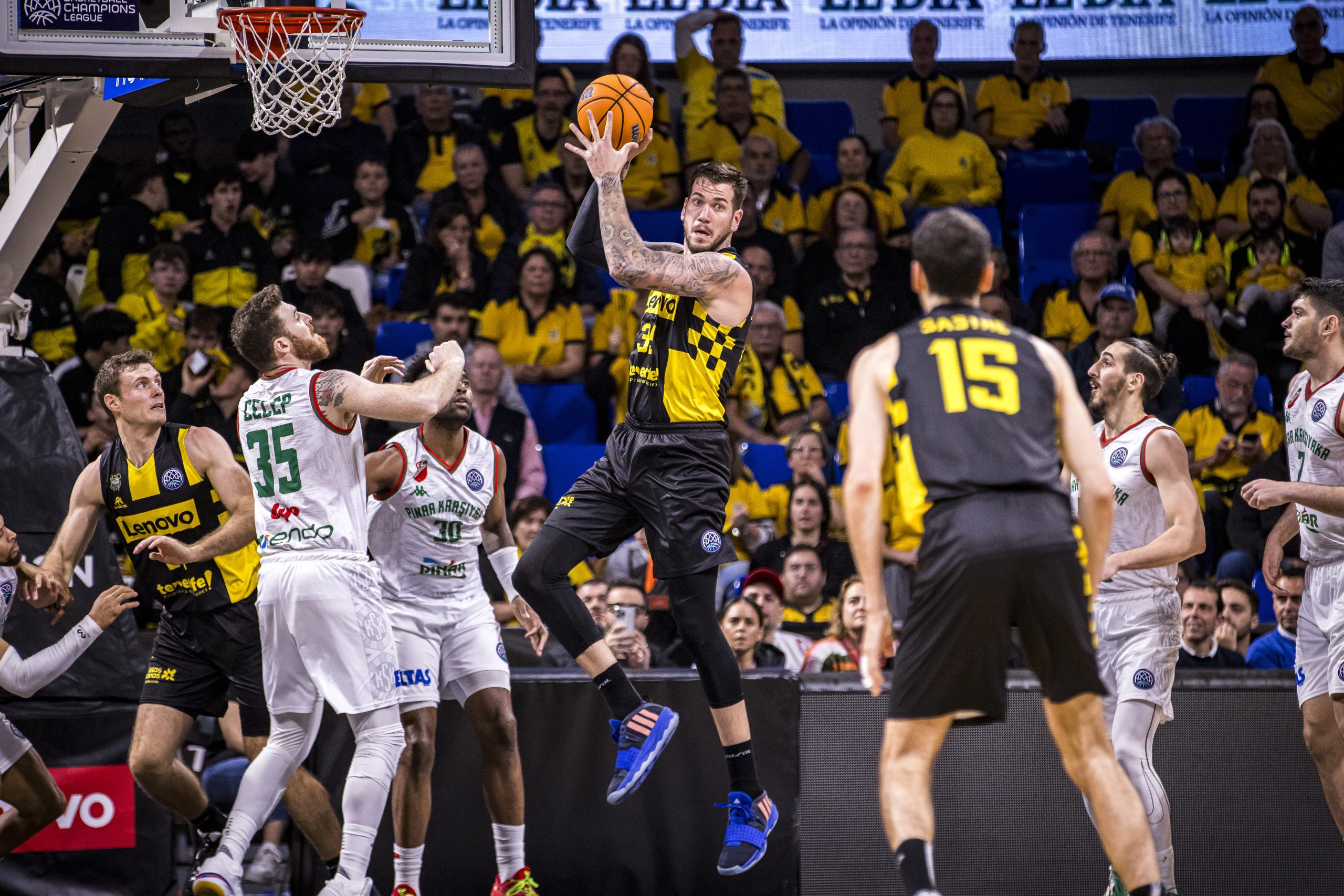 jueves, 14 marzo, 2024 - 12:03Un triunfo con doble premio. El Lenovo Tenerife superó este miércoles noche al Pinar Karsiyaka (88-79), al tiempo que sellaba su clasificación para los cuartos de final de la Basketball Champions League (BCL), por séptima vez en los ocho años de historia del torneo, y se encaramaba al liderato en solitario del Grupo K, con un balance de 4/1.