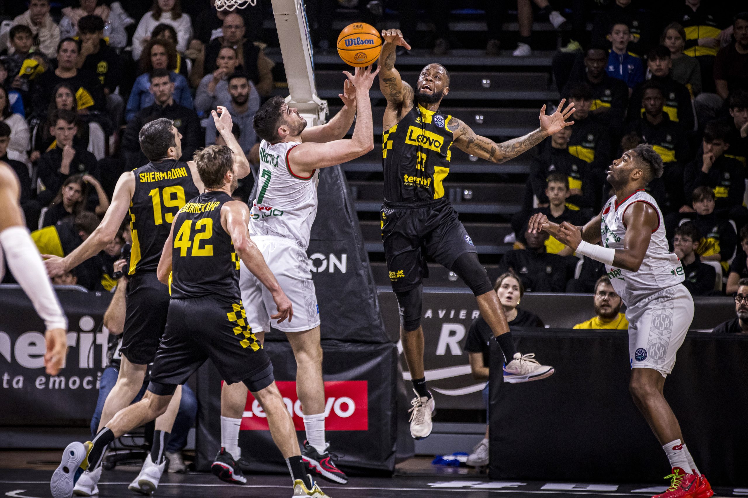El Lenovo amagó con sentenciar el choque (67-58, tras cinco puntos consecutives de Gio Shermadini, con dos mates de por medio), pero los de Ufus Sarika respondieron siempre con entereza. El choque entró entonces en un intercambio de aciertos desde el 4,60 por mucho que los laguneros trataran de ampliar su renta (70-60, min. 29).