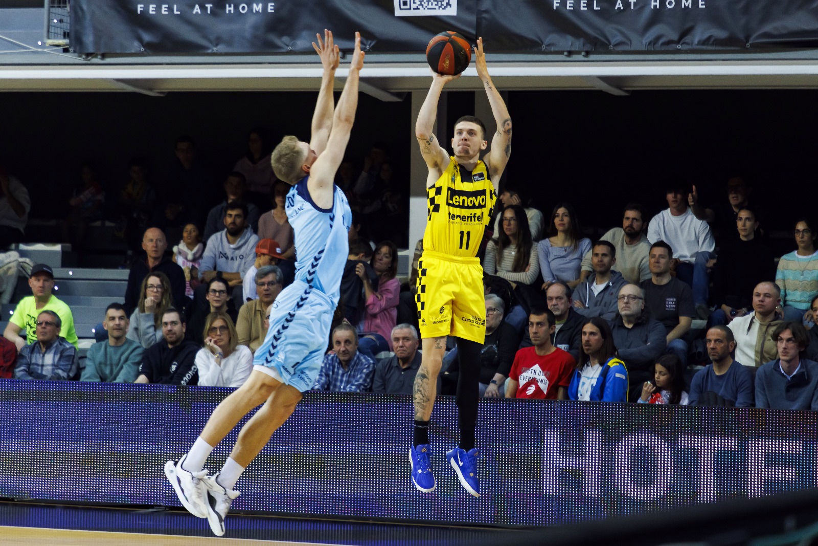 El partido nació con los tinerfeños muy enchufados, contestando a la canasta inicial de Maric, con un parcial de 0-14. El buen hacer atrás y el criterio para mover el balón se tradujeron en un inicio inspirado desde el arco (3/4 de entrada), con varias acciones de mérito de Joan Sastre, Kyle Guy y Marcelinho Huertas.