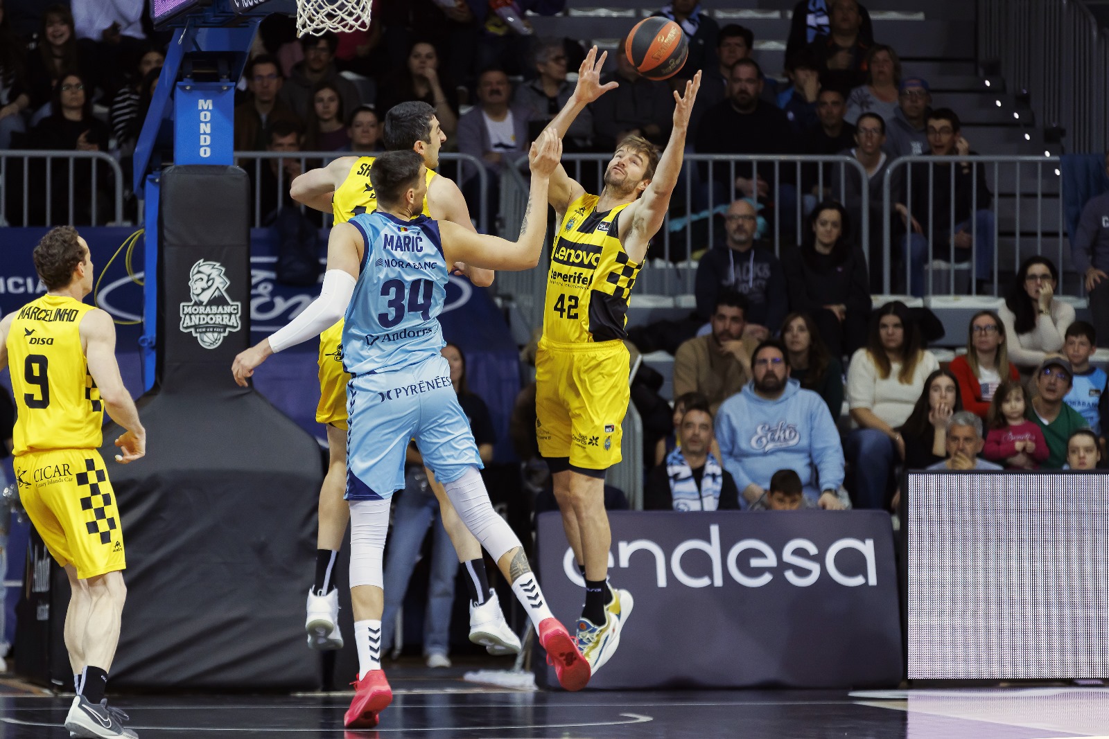 sábado, 16 marzo, 2024 - 11:03Un triunfo a pico y pala. El Lenovo Tenerife se impuso este sábado al Morabanc Andorra (66-79), con un sólido ejercicio colectivo para festejar su decimoquinta alegría liguera del curso y aferrarse a la zona noble de la Liga Endesa.
