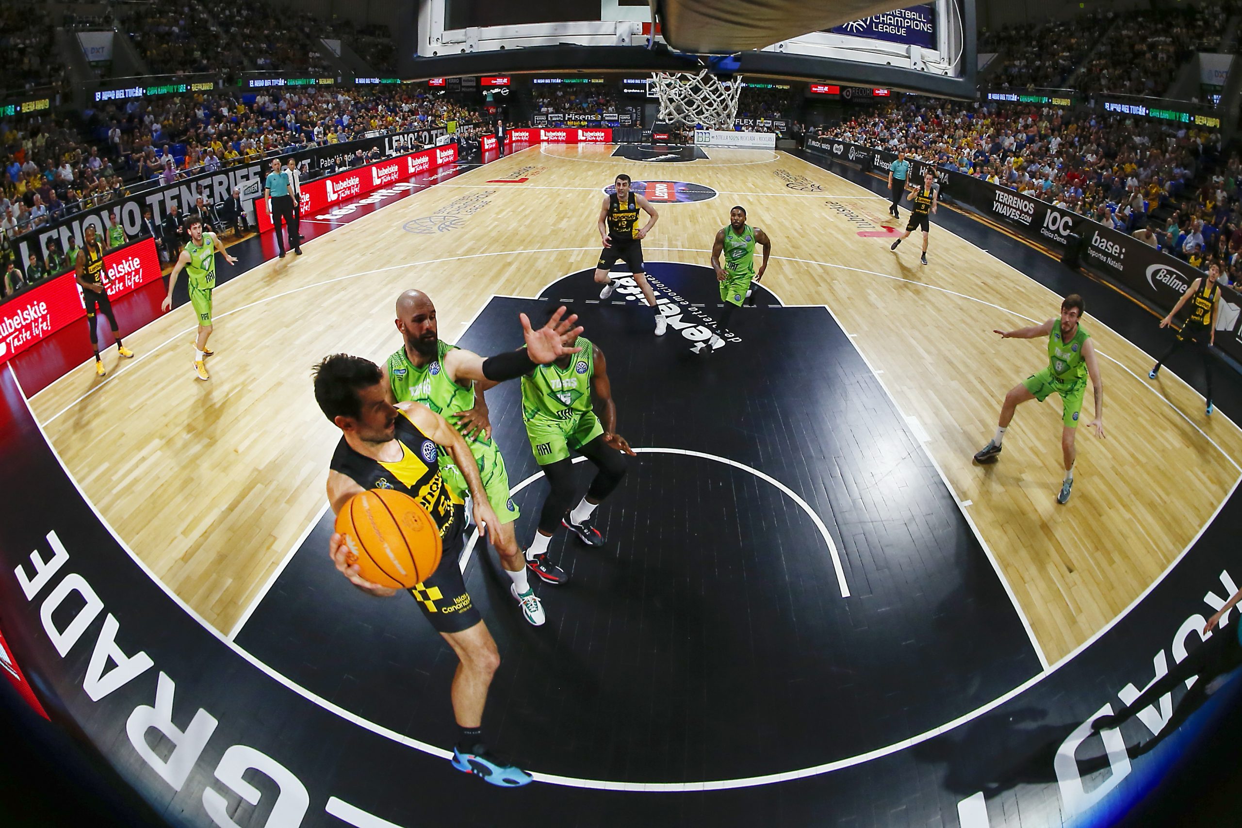 Arrancó el pulso con los anfitriones muy metidos, pese a alguna concesión en el rebote defensivo. El criterio para mover el balón, con un par de triples de por medio de Sasu Salin, y el buen trabajo para encimar las líneas de pase (hasta tres robos en el primer cuarto), permitieron a los aurinegros incluso anotar al contraataque para coger las riendas del marcador, tras un parcial brutal de 17-0 (21-4).