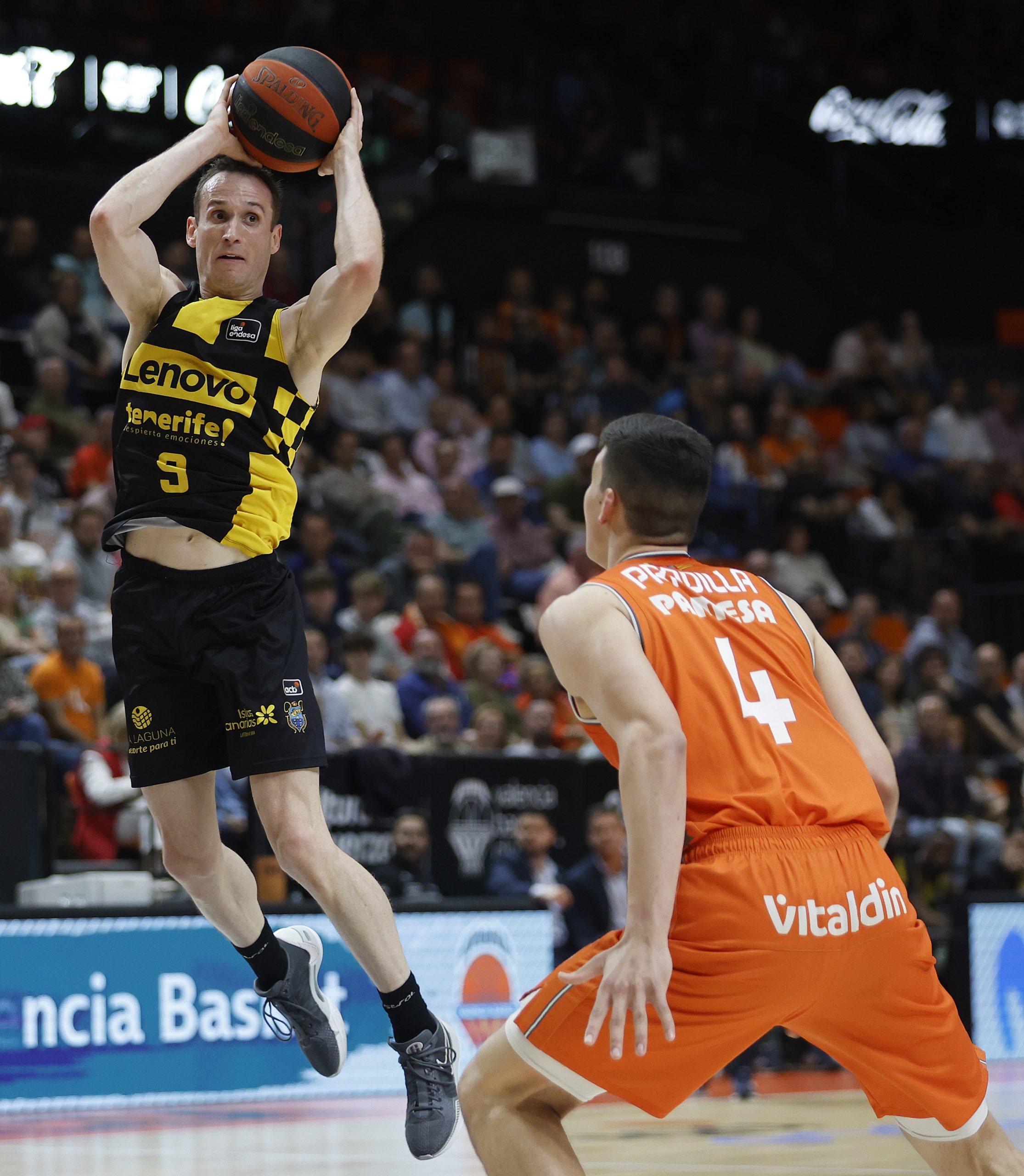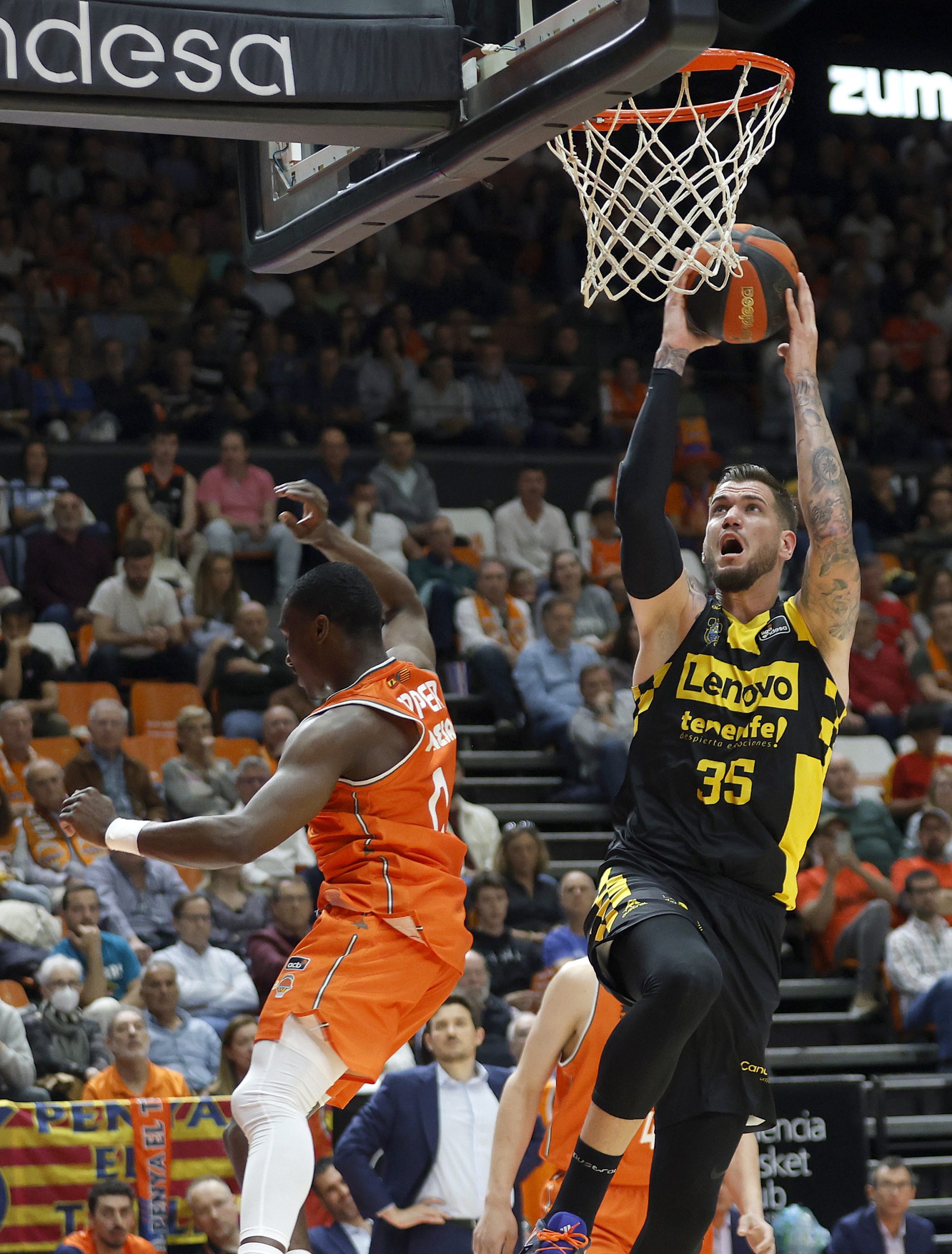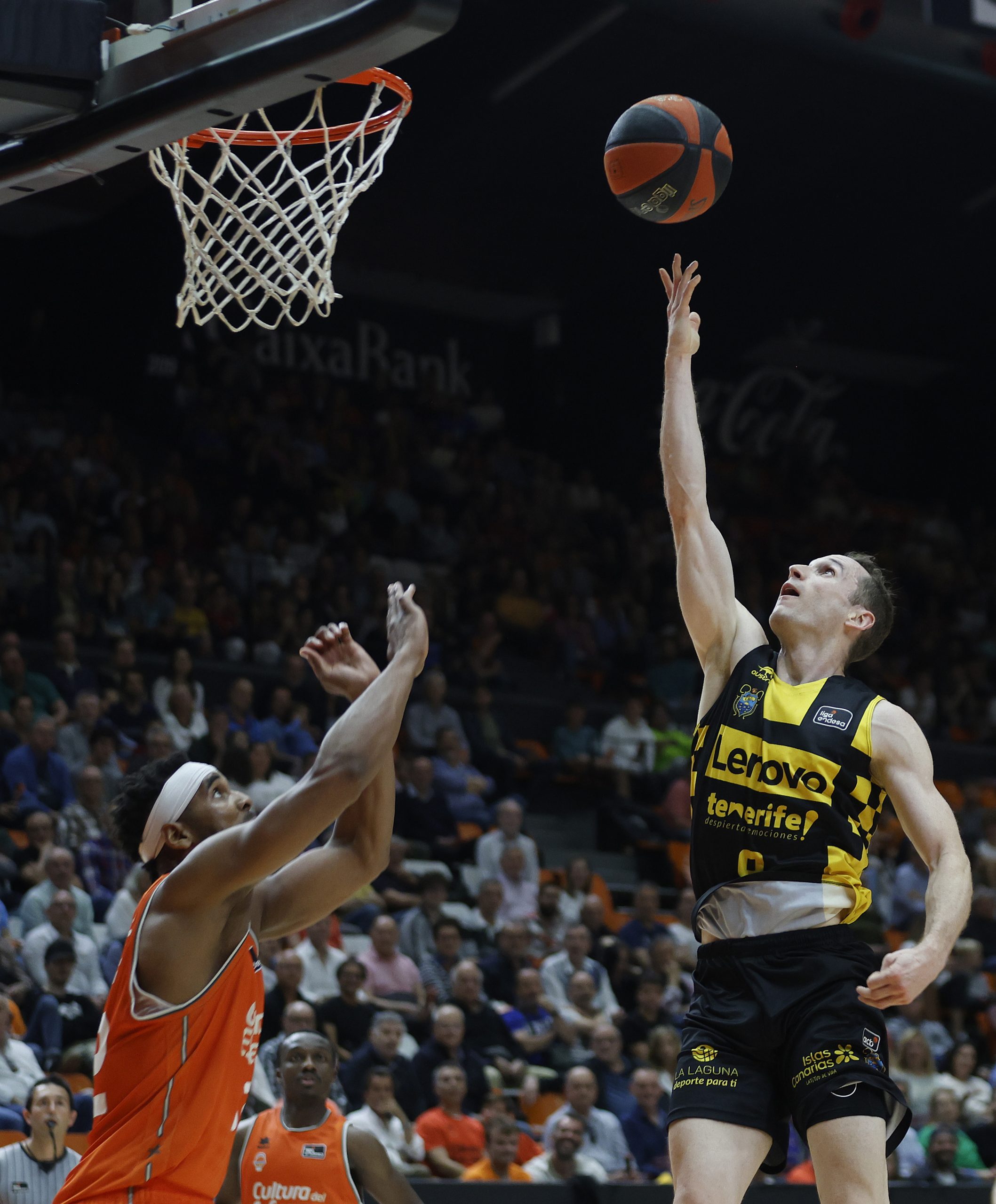 domingo, 21 abril, 2024 - 06:04El Lenovo Tenerife no pudo prolongar su buena racha liguera al caer este domingo en su visita al Valencia Basket (98-73), en un partido donde nunca estuvo cómodo. El equipo aurinegro se vio superado por un adversario muy físico, más intenso y acertado que los insulares.