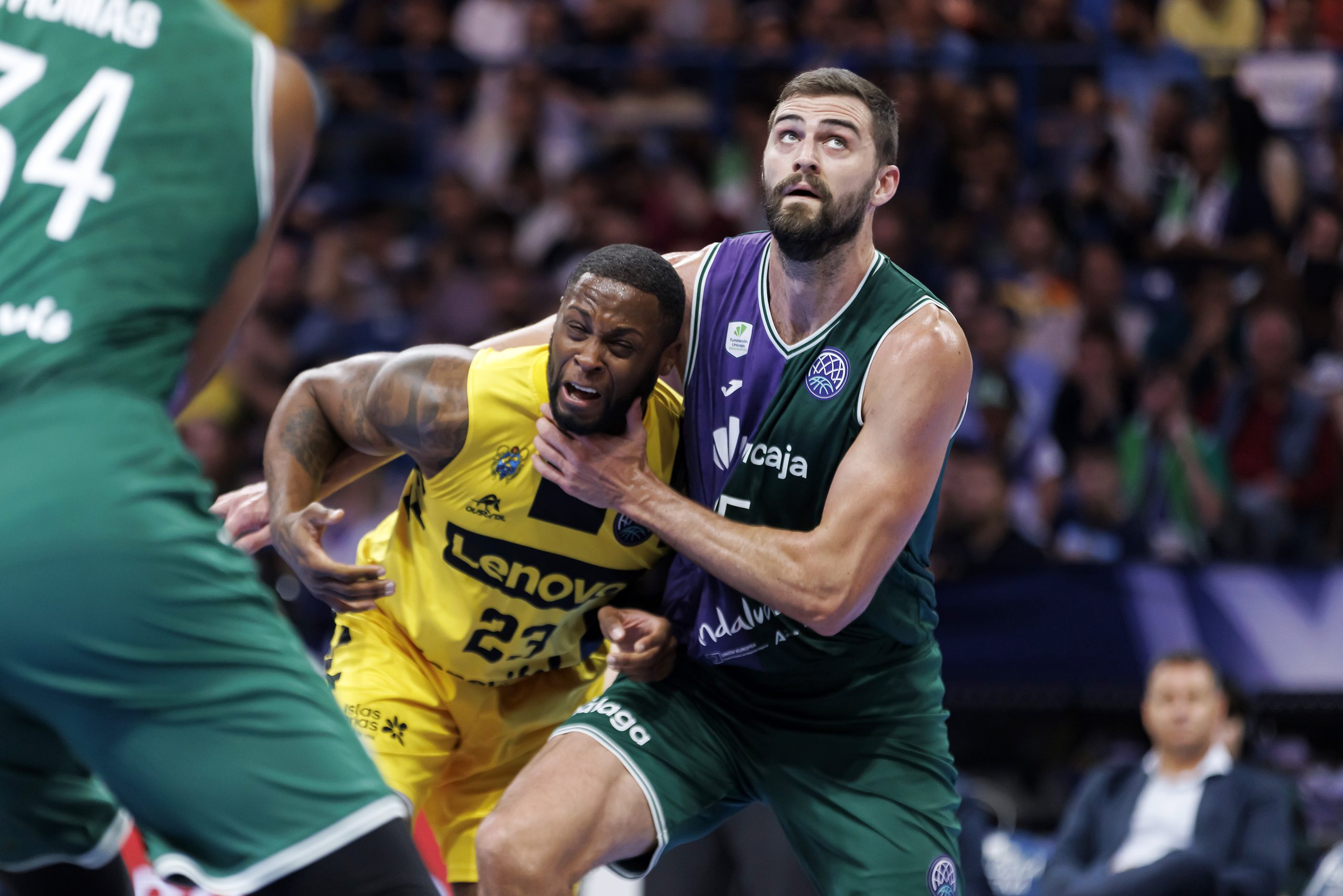 El choque nació con imprecisiones por ambos bandos (4-4, min. 5), con Marcelinho Huertas asumiendo la responsabilidad ofensiva de los aurinegros y los andaluces tratando de correr e imponer un ritmo alto al partido.