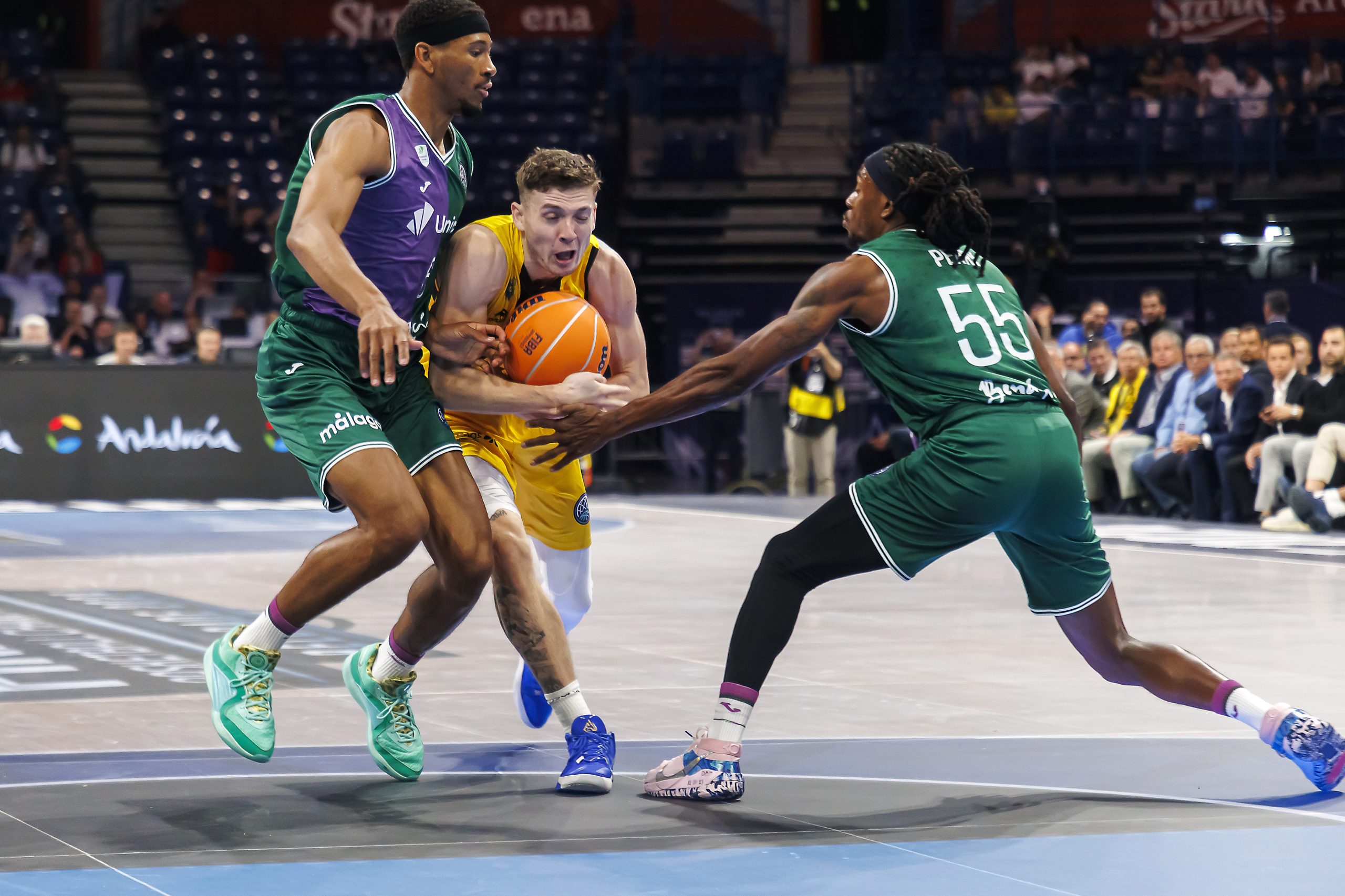 Un nuevo arreón malagueño les llevó al descanso once arriba (27-38), pese a varias acciones de mérito de Édgar Vicedo. Tras la pausa, las dificultades fueron a más, con tres triples casi consecutivos de Djedovic, y la renta andaluza creció hasta los 15 puntos (37-52).