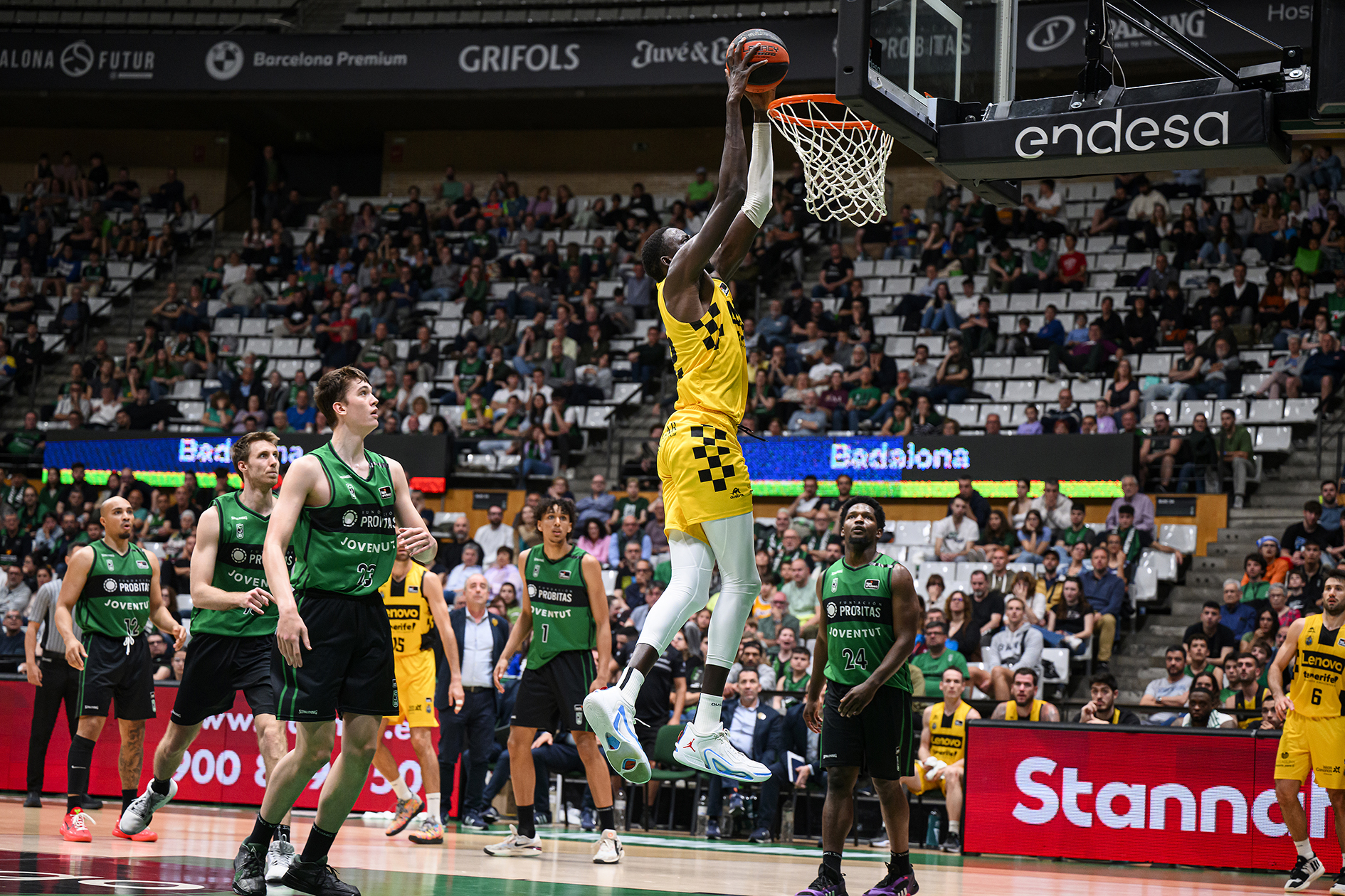 jueves, 9 mayo, 2024 - 11:05El Lenovo Tenerife cayó este jueves noche en su visita al Joventut de Badalona (96-88), tras una mala primera mitad, donde los anfitriones fueron mejores y sentenciaron prácticamente el choque para condenar cualquier opción de triunfo aurinegro.