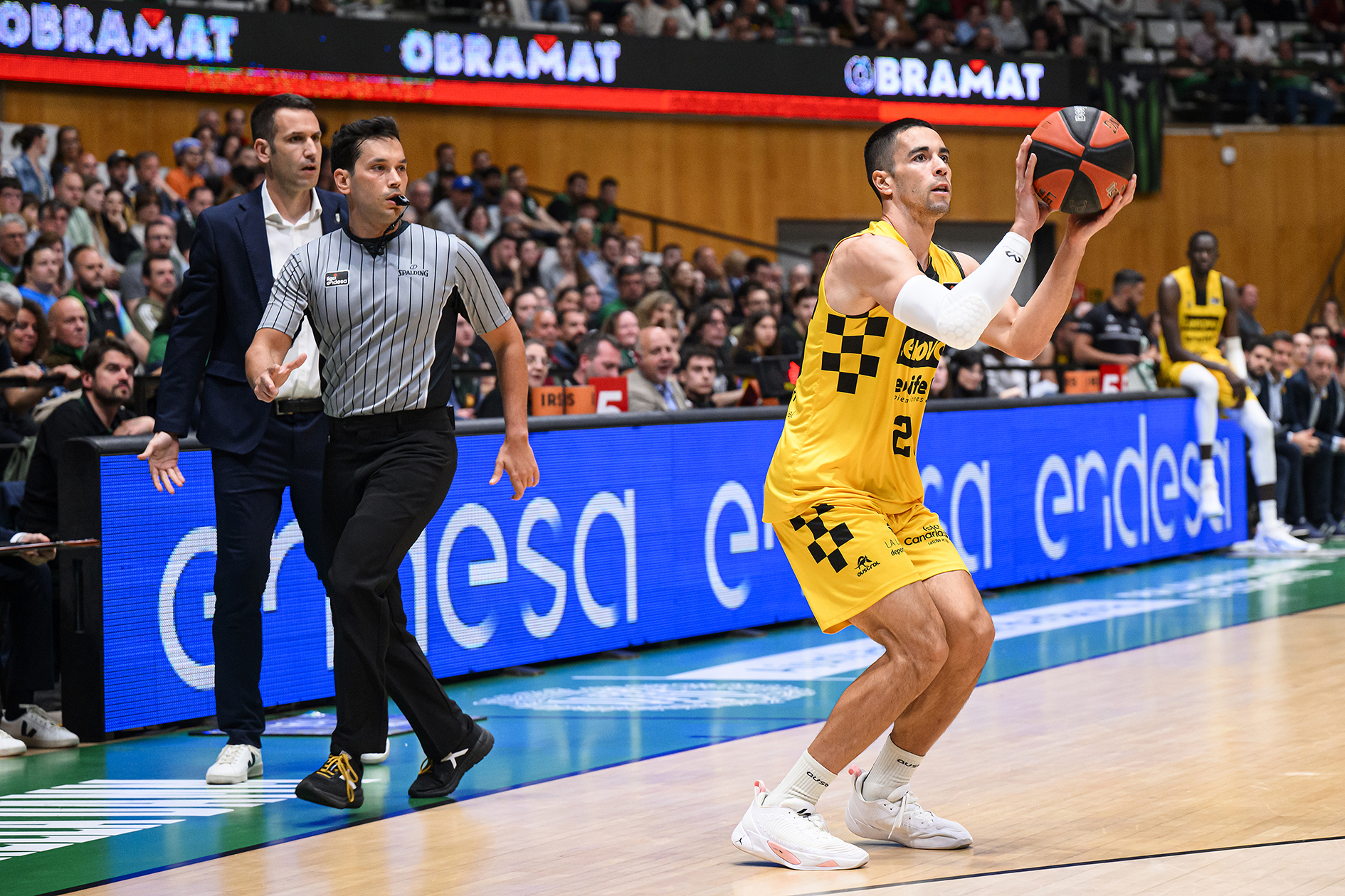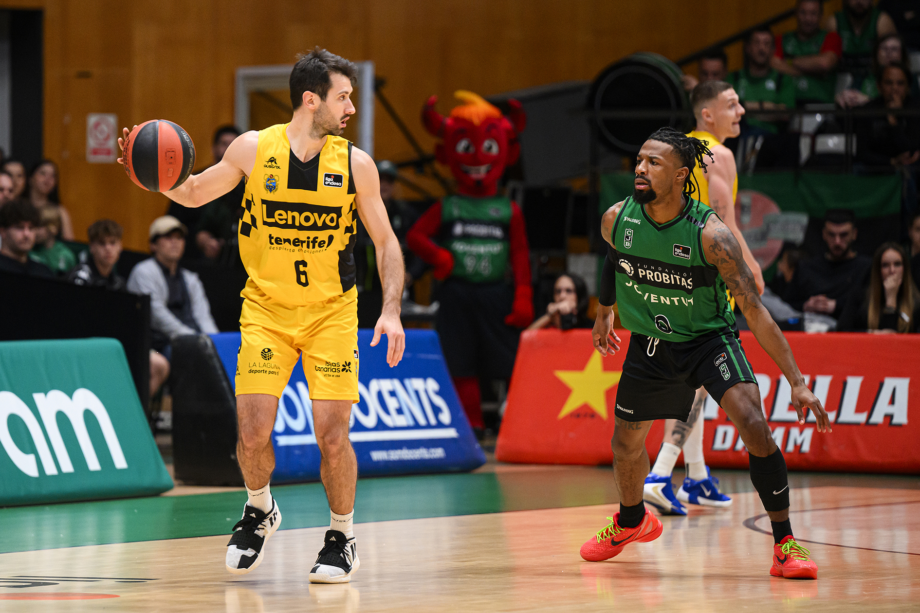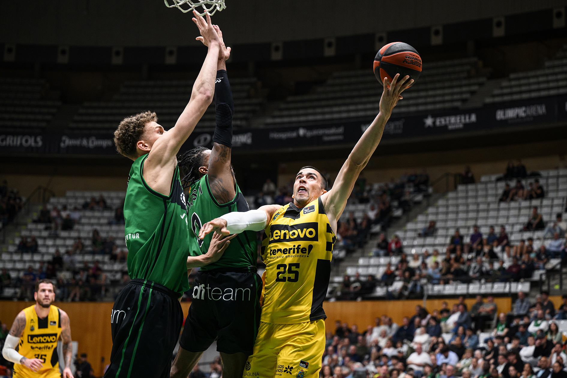 Frustrado por momentos, el Lenovo Tenerife vivía entonces sus peores minutos ante un rival más intenso, que ganaba confianza con el paso de los minutos y ampliaba su renta por encima de la treintenta de puntos (54-22). Camino del descanso, los de Txus Vidorreta lograban minimizar daños con un parcial de 0-11, tras un 2+1 de Ilimane Diop, un triple de Édgar Vicedo y cinco puntos seguidos de Bruno Fitipaldo (54-33, min. 20).