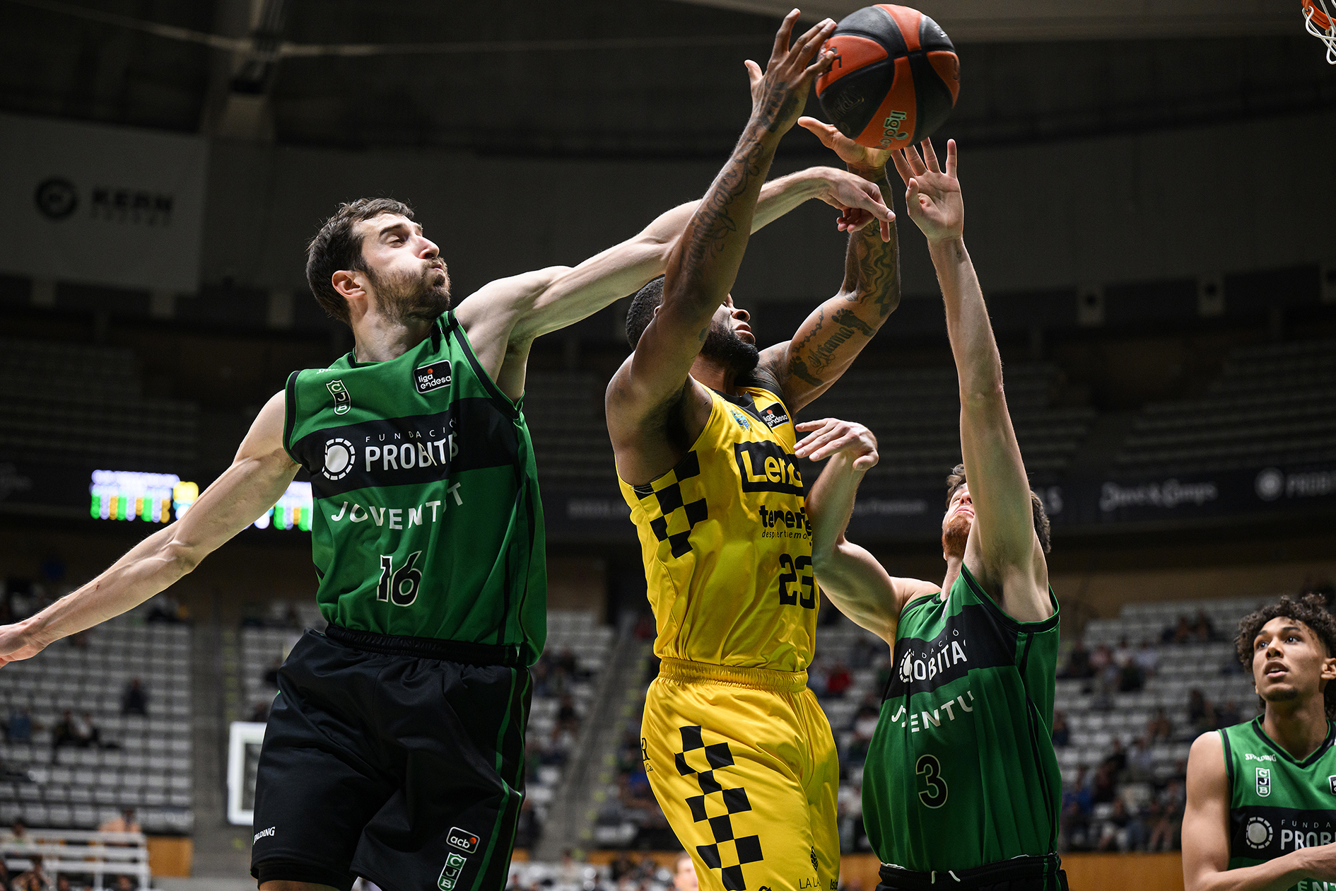 La mejoría fue evidente. Los insulares llegaron a reducir la desventaja a trece (60-47, min. 26) y a doce en varias ocasiones (74-62, min. 31), con la esperanza de forzar un epílogo más parejo. Incluso, ya en el los últimos minutos, los errores en los libres del Joventut y la insistencia canarista les llegó a situar a solo seis, con pocos segundos para el cierre, pero no fue suficiente.
