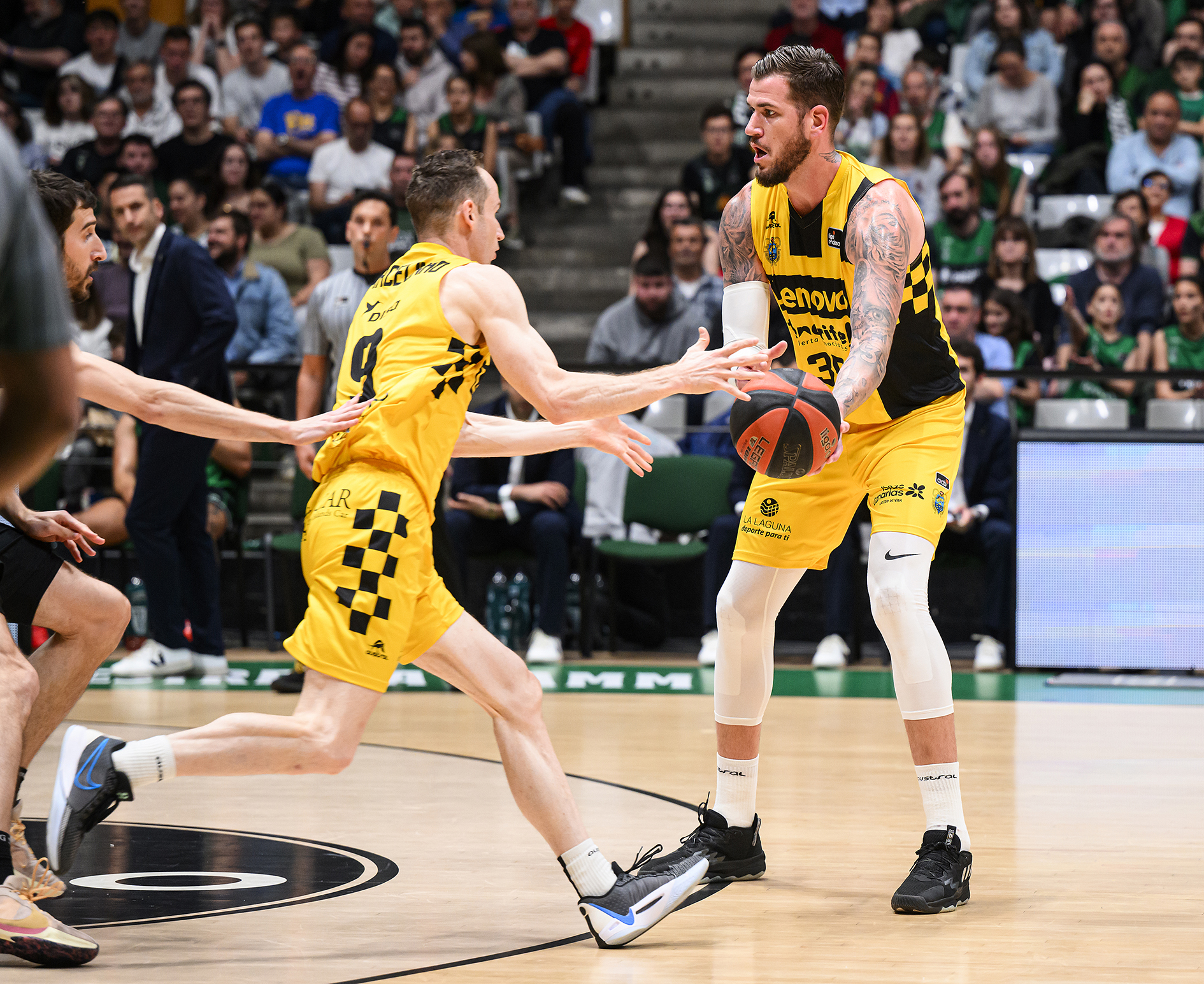 Tras el paso por vestuarios, la escuadra tinerfeña siguió mejorando en varios frentes, cerró mejor el rebote y especialmente el grifo de los balones perdidos, para ir estrechando el cerco paulatinamente, al amparo otra vez de un inspirado Fitipaldo y de los puntos de Kyle Guy.