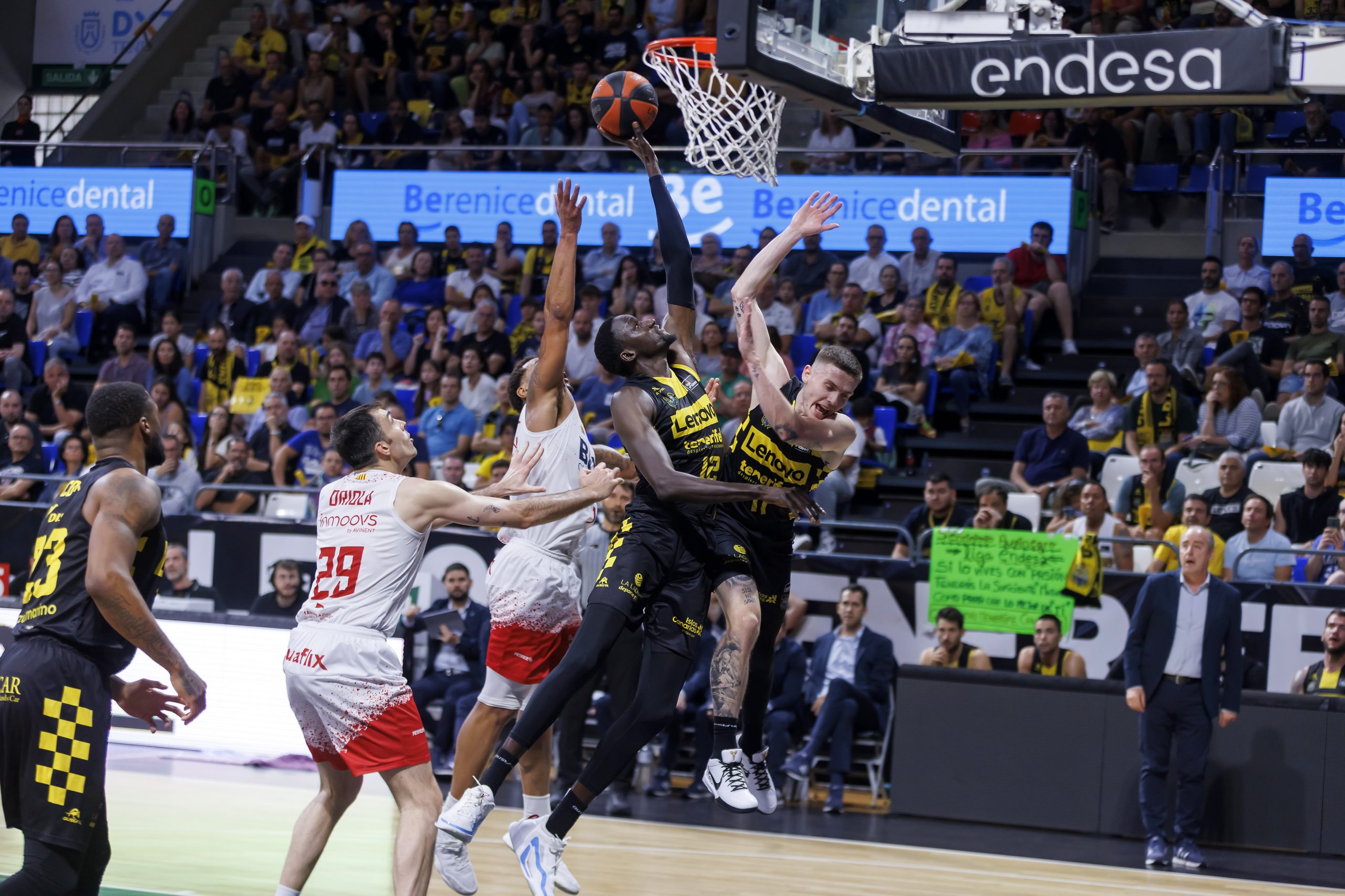 Tras el paso por vestuarios, el Canarias tuvo que seguir remando, entre otras cosas porque los de Pedro Martínez firmaron un parcial de salida de 2-11 y fueron con todo a por el triunfo (50-54). En ese panorama, un triple de Bruno Fitipaldo y una acción posterior de Elgin Cook frenaron el ímpetu visitante y dieron paso a un derroche atrás de los insulares.