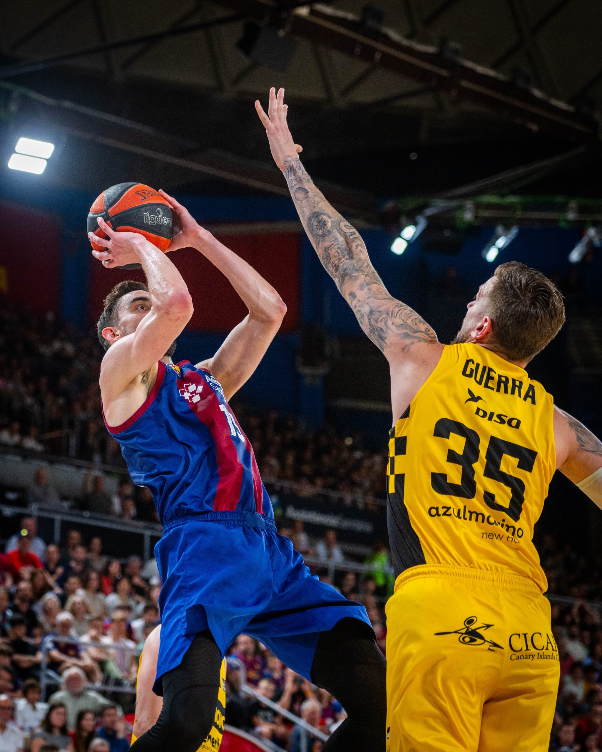 La mayor profundidad de banquillo de los culés (43 puntos de su segunda unidad por 12 de la insular), su acierto en el triple (13/26) y sus segundas opciones en los minutos calientes para firmar un 16-5 en la recta final, acabaron por confirmar la victoria azulgrana, en el primer asalto de una serie de cuartos de final programada al mejor de tres choques, con factor cancha a favor de los de Roger Grimau.