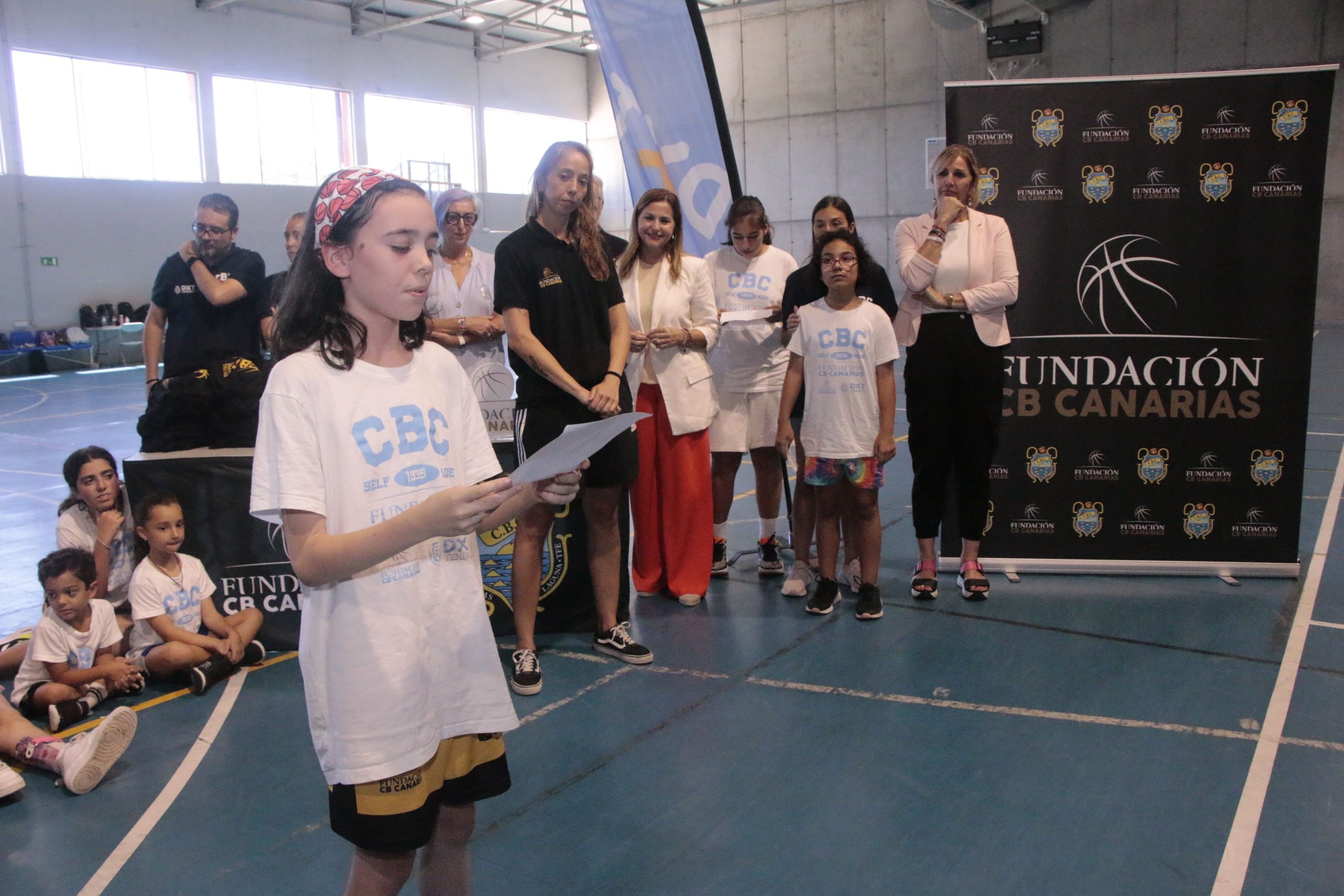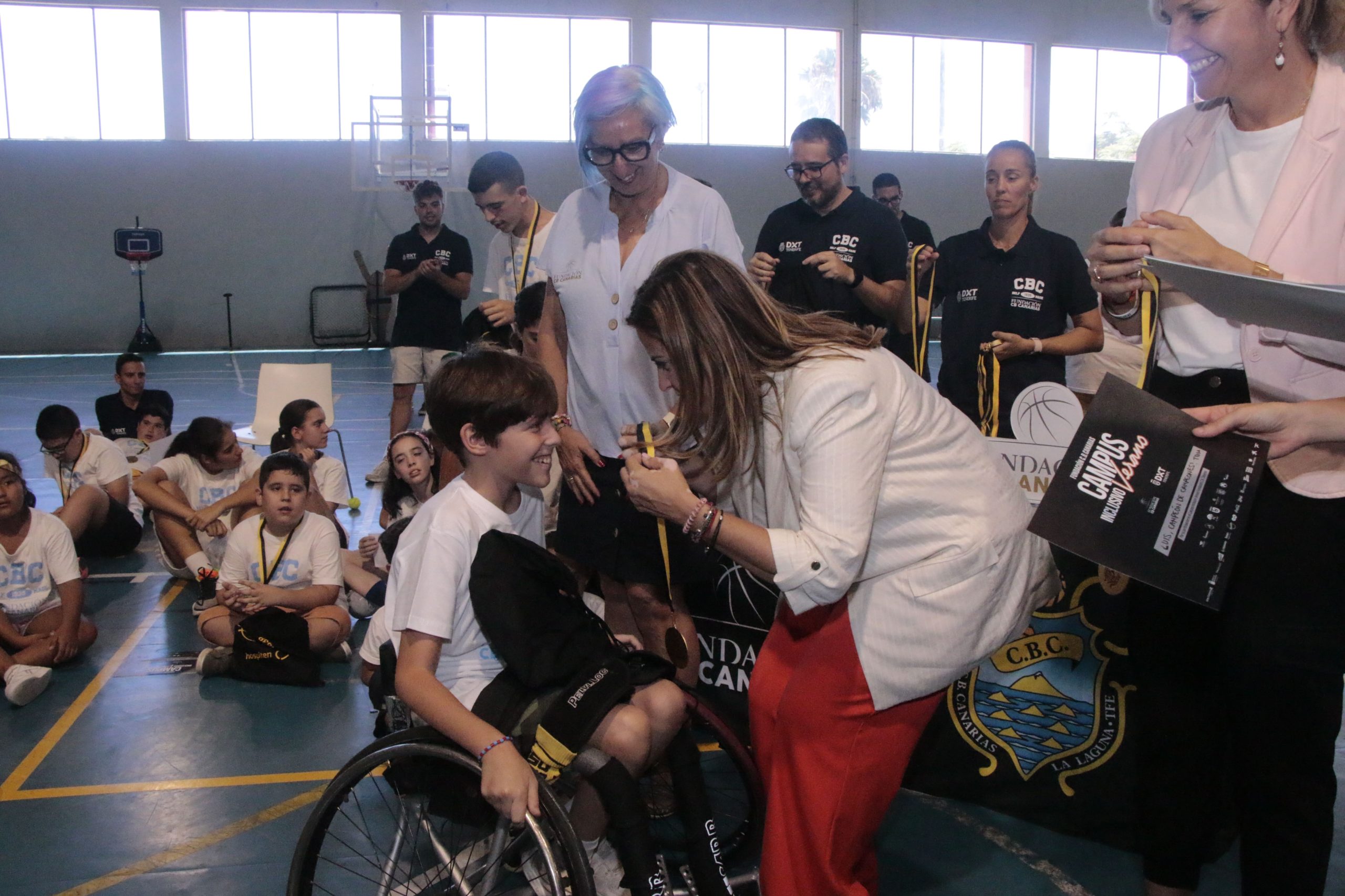 Culmina el Campus Inclusivo de Baloncesto, que se ha venido desarrollado en el Complejo Deportivo Santa Cruz-Ofra, en horario de mañana, desde el pasado 1 de julio. Este miércoles 31 se ha clausurado la actividad con un acto de entrega de diplomas, al que han asistido la consejera insular de Deportes, Yolanda Moliné; la consejera insular de Acción Social, Inclusión y Voluntariado, Águeda Fumero; la presidenta del Santa Cruz ADEIN Tenerife Fundación CB Canarias, Ana Magaly Rodríguez; y el patrono de la Fundación CB Canarias, José Carlos Hernández Rizo.
