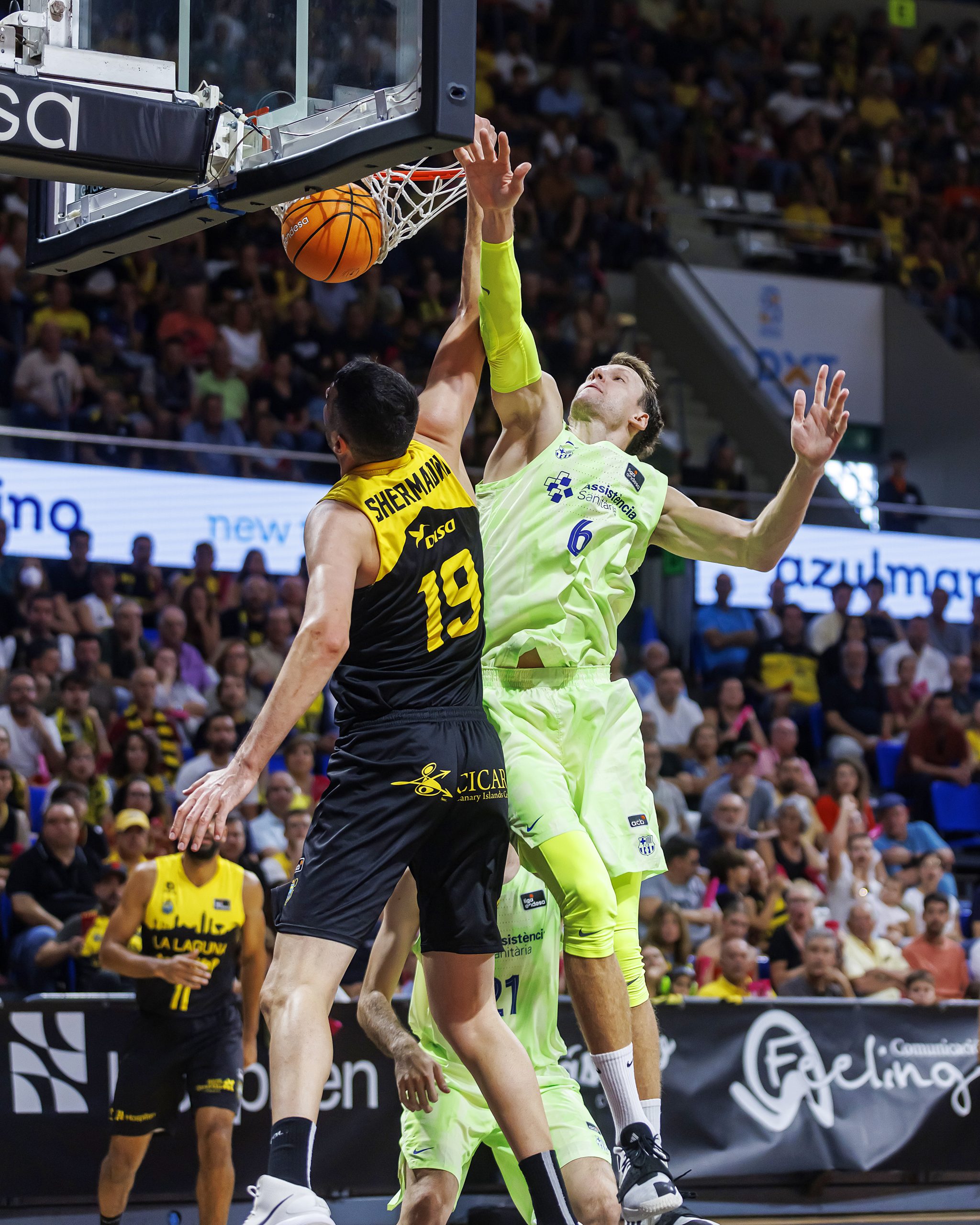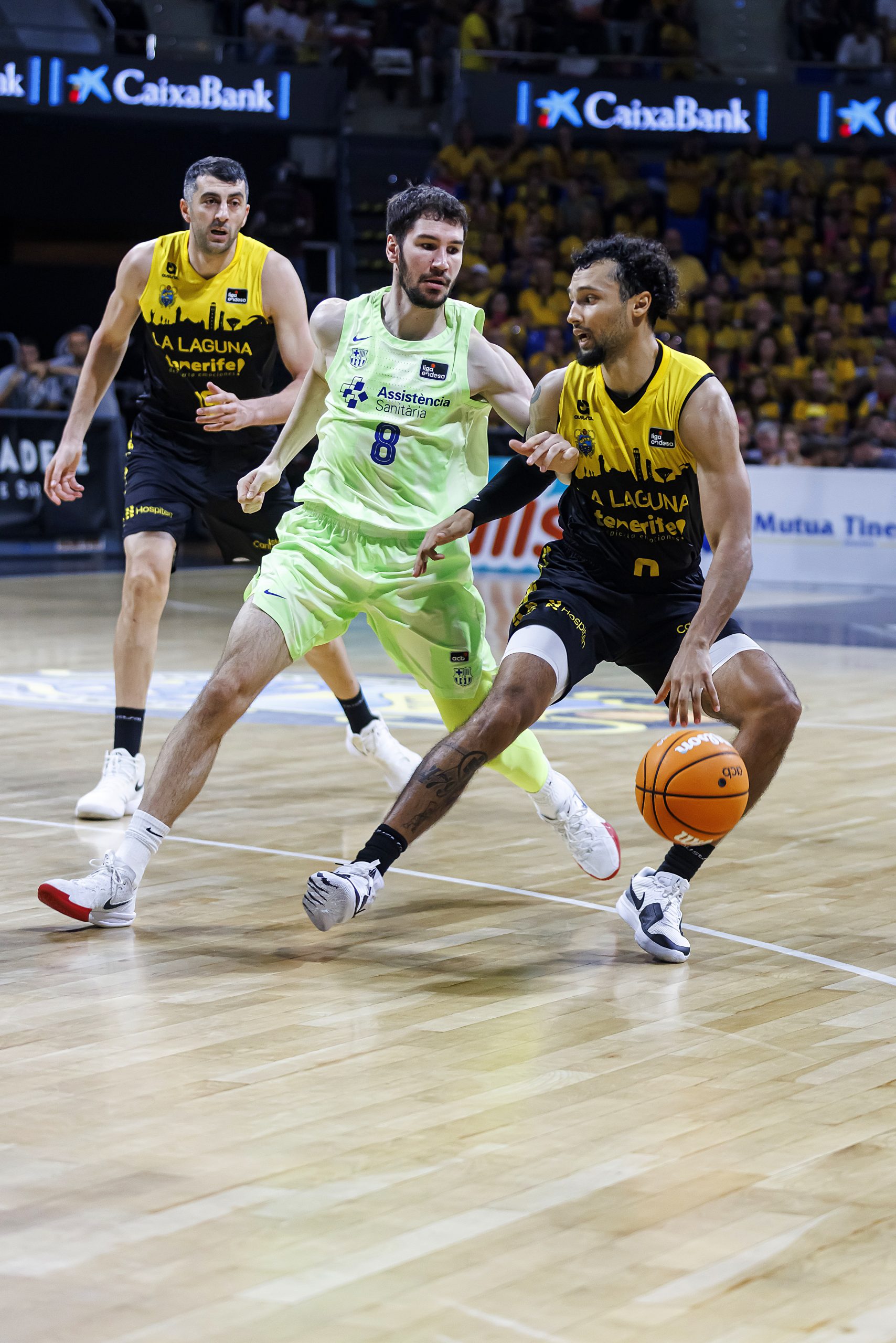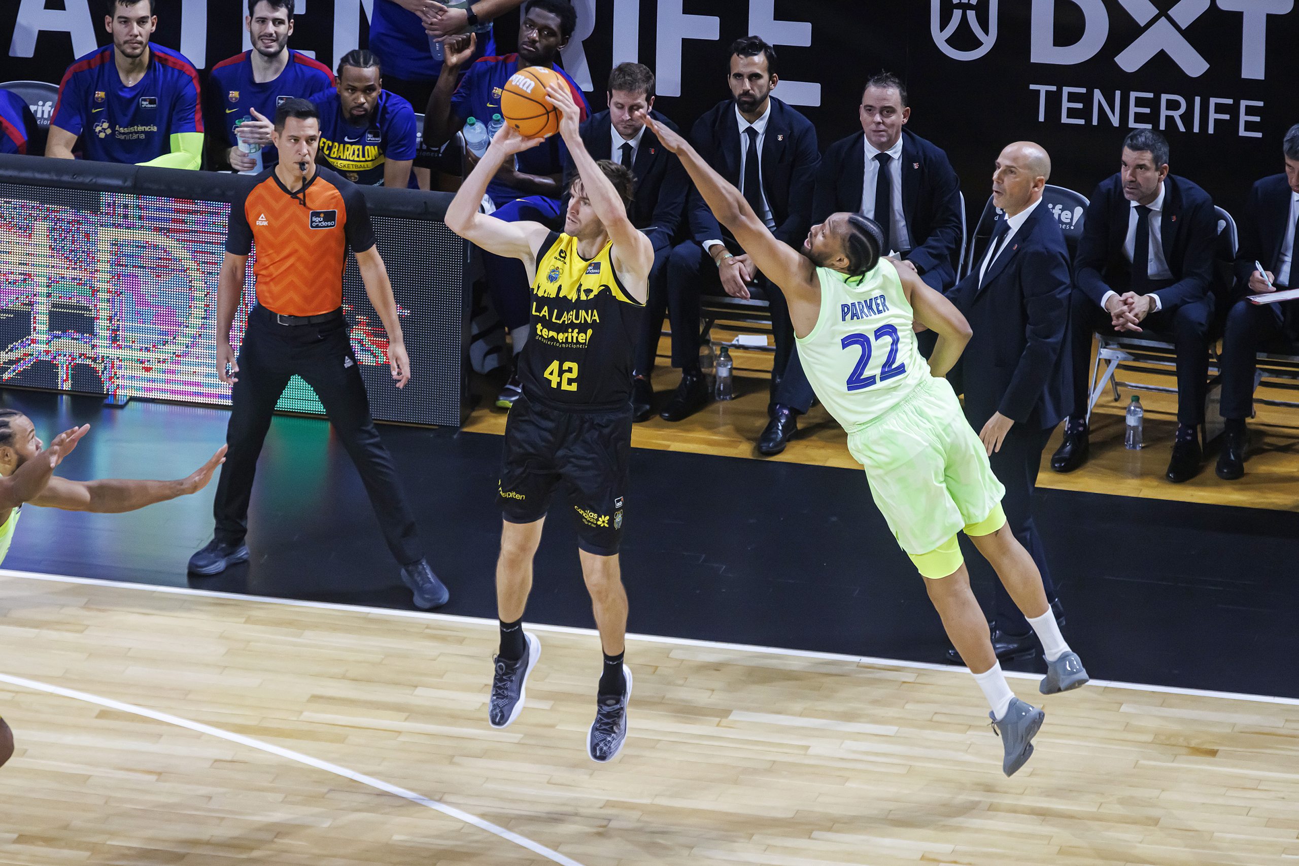 La salida a cancha de Gio Shermadini y la fortaleza defensiva del bloque permitían a los locales que el encuentro creciera en clave aurinegra y llegara al descanso con 43-39 en el electrónico. Tras el paso por vestuario, La Laguna Tenerife continuó jugando con la valentía y el acierto necesarios (50-41, tras cinco puntos consecutivos de Payton Willis), pero el Barça recurrió a su enorme arsenal de recursos para estrechar el cerco progresivamente. Por el camino, los laguneros perdían a Joan Sastre, con un golpe en el dedo gordo del pie derecho (pendiente de pruebas para concretar diagnóstico).