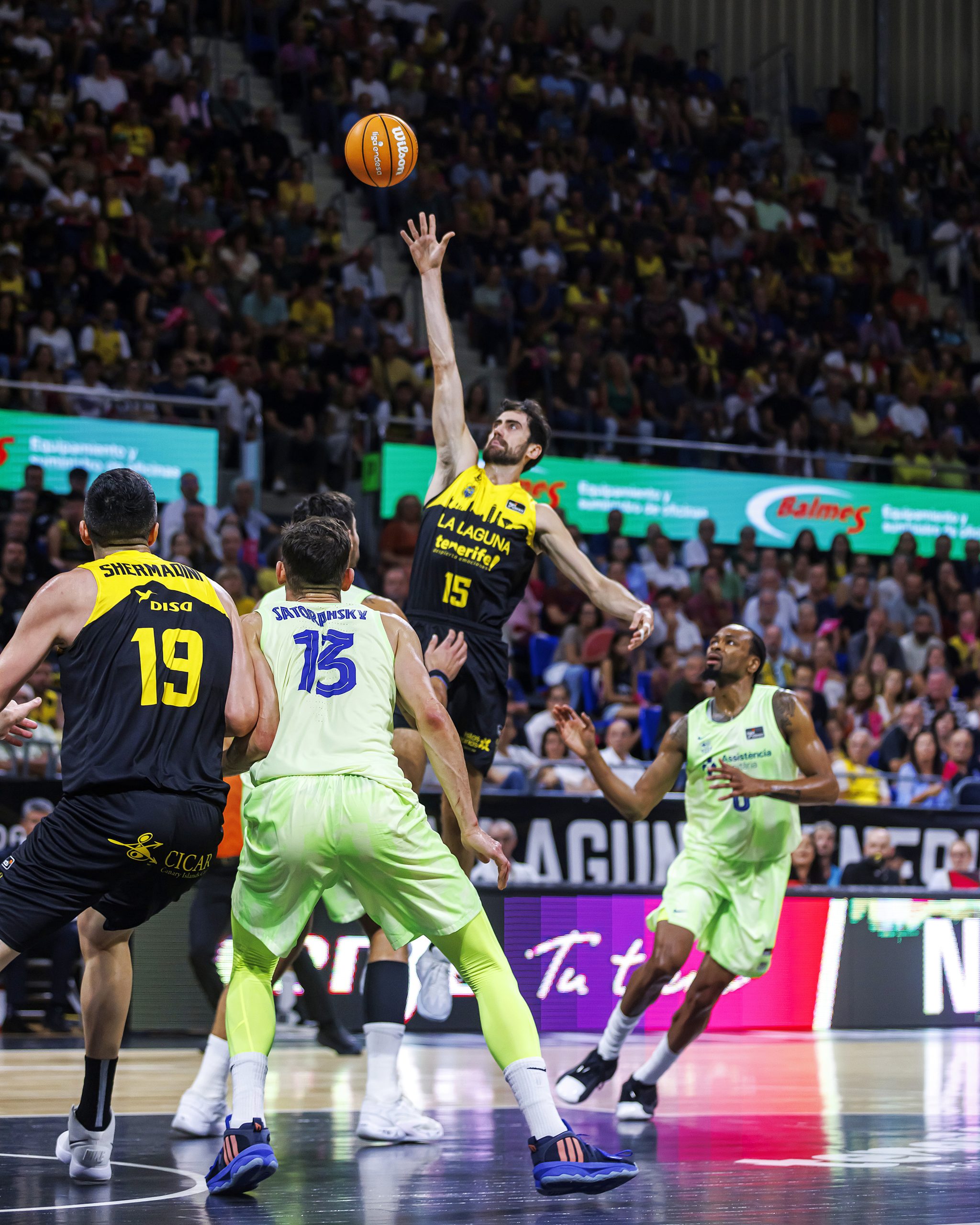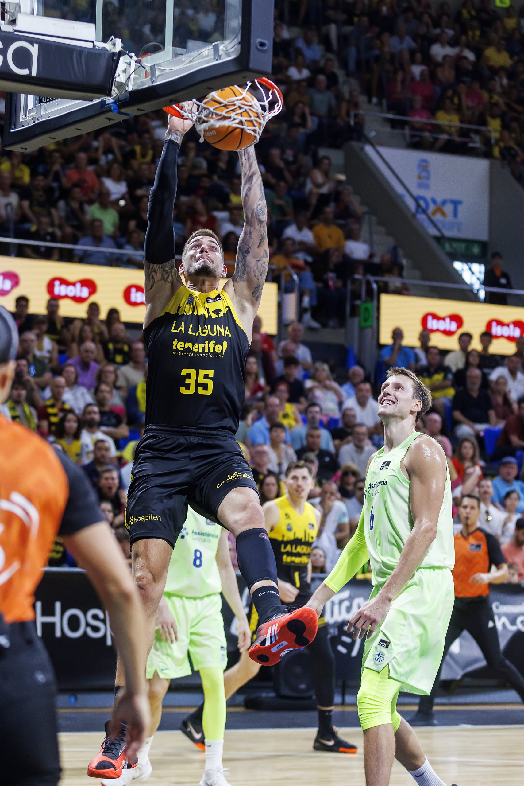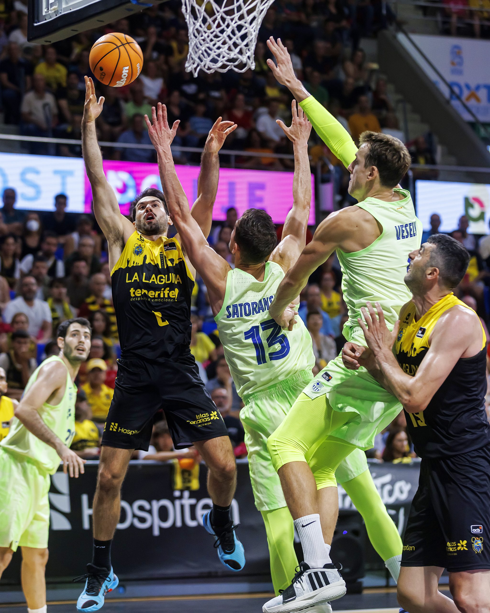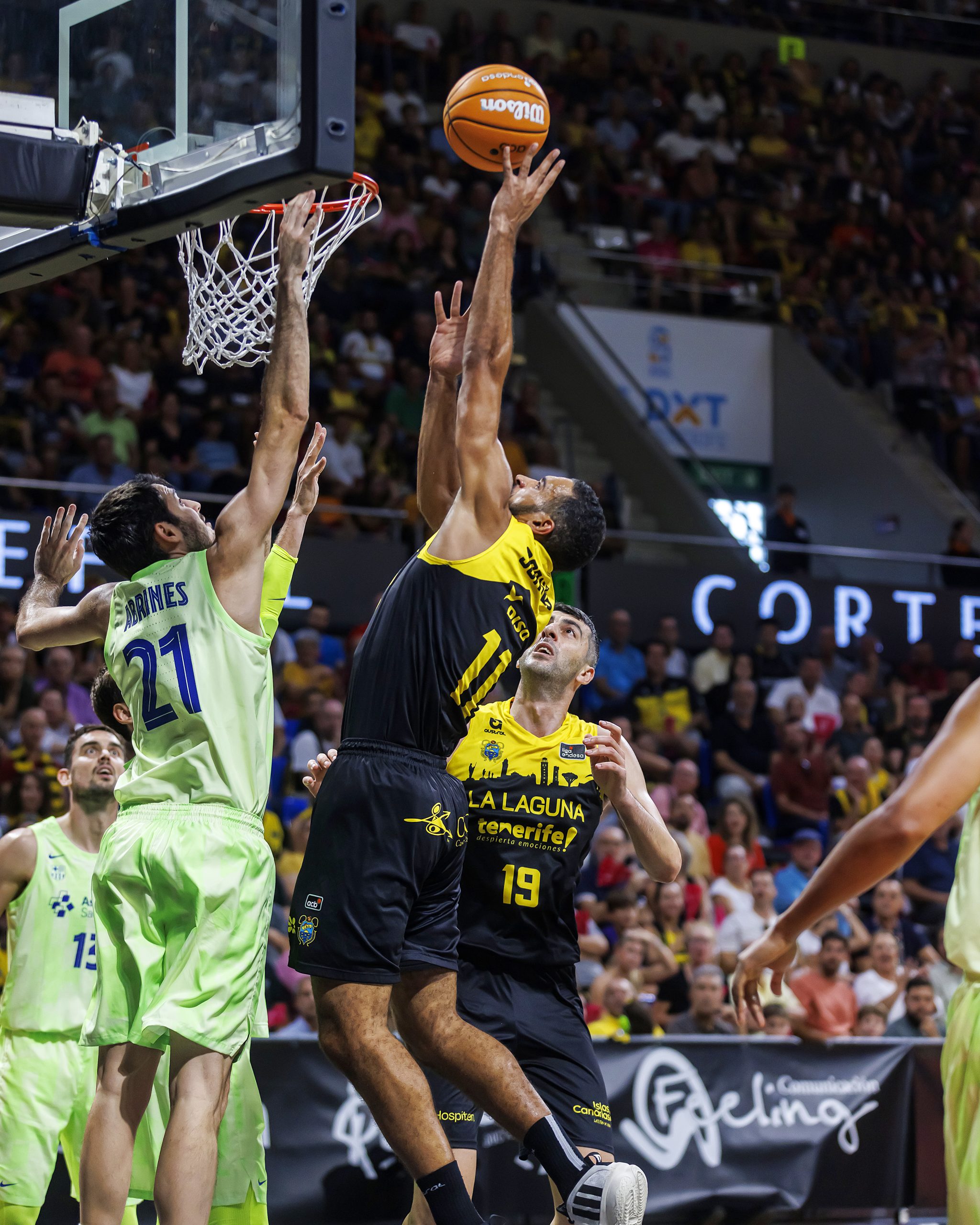 La salida a cancha de Gio Shermadini y la fortaleza defensiva del bloque permitían a los locales que el encuentro creciera en clave aurinegra y llegara al descanso con 43-39 en el electrónico. Tras el paso por vestuario, La Laguna Tenerife continuó jugando con la valentía y el acierto necesarios (50-41, tras cinco puntos consecutivos de Payton Willis), pero el Barça recurrió a su enorme arsenal de recursos para estrechar el cerco progresivamente. Por el camino, los laguneros perdían a Joan Sastre, con un golpe en el dedo gordo del pie derecho (pendiente de pruebas para concretar diagnóstico).