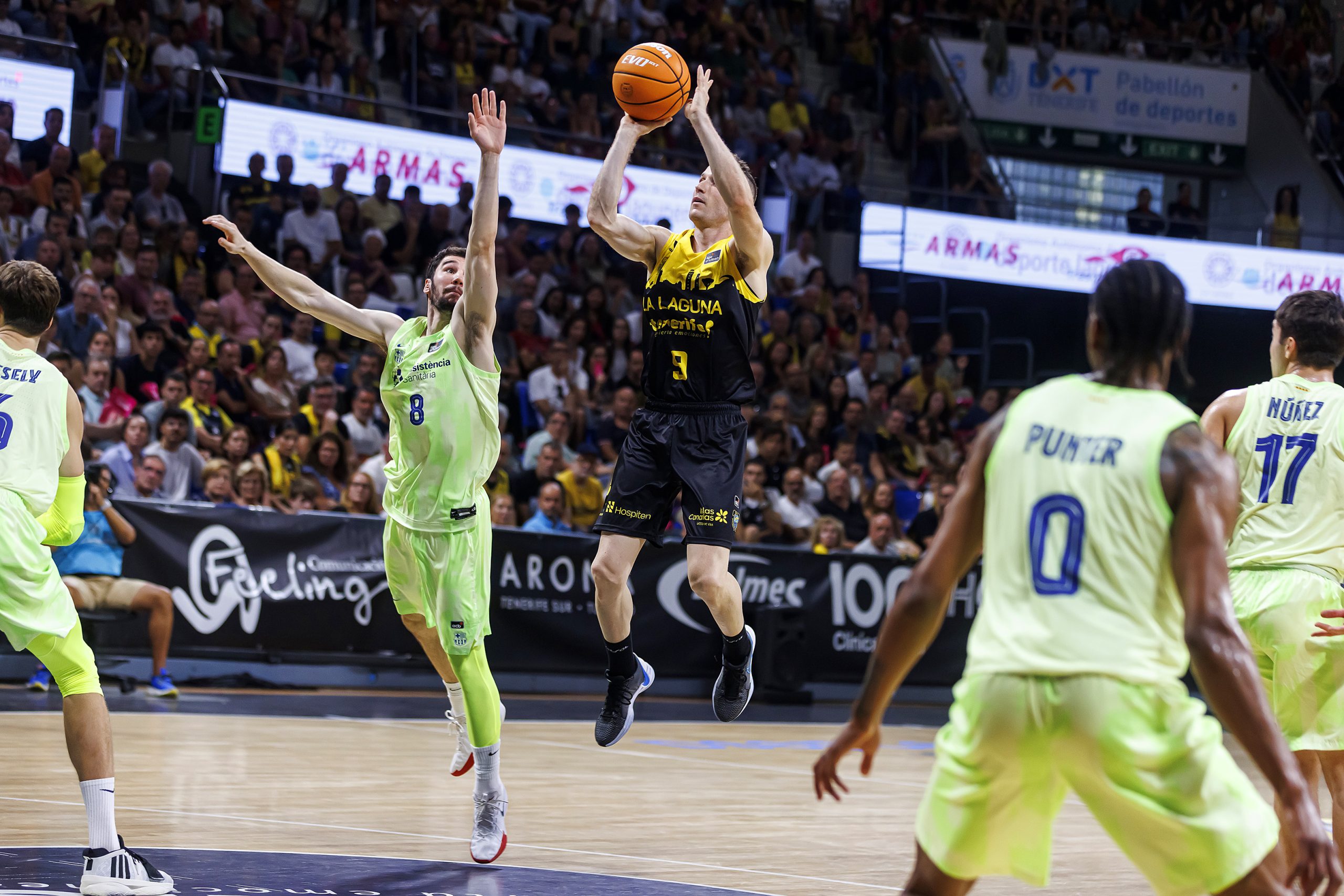 El choque arrancó a ritmo de vértigo, con los dos equipos a tumba abierta en ataque intercambiando triples. En ese escenario, la escuadra insular trató de abrir brecha (9-4, tras sendos aciertos desde la larga distancia de Fitipaldo, Scrubb y Doornekamp), pero el Barça reaccionó de la mano de Laprovittola (15 puntos al descanso), con un parcial de 2-13 (11-17).