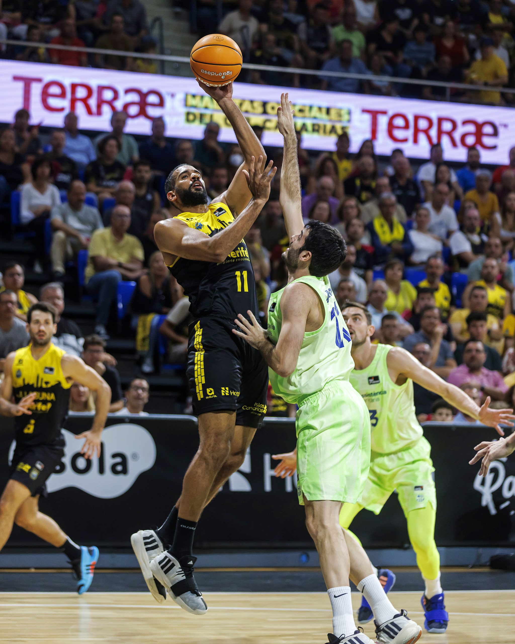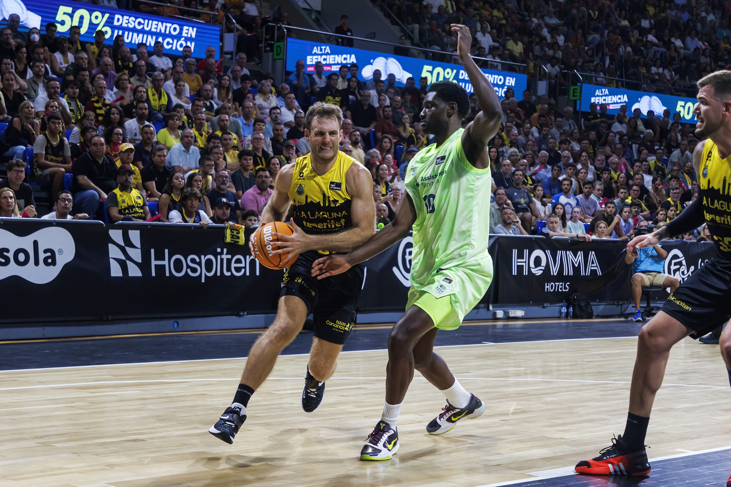 El Canarias aceptó el reto y acentuó su intensidad atrás, lo que unido a la irrupción de la segunda unidad, volvió a mandar el partido a su trinchera. Los anfitriones movían el balón con criterio y firmaban un arreón de 14-0 en la transición del primer al segundo cuarto para poner en seios apuros a su rival: 25-17, tras cinco puntos consecutivos de Tim Abromaitis.