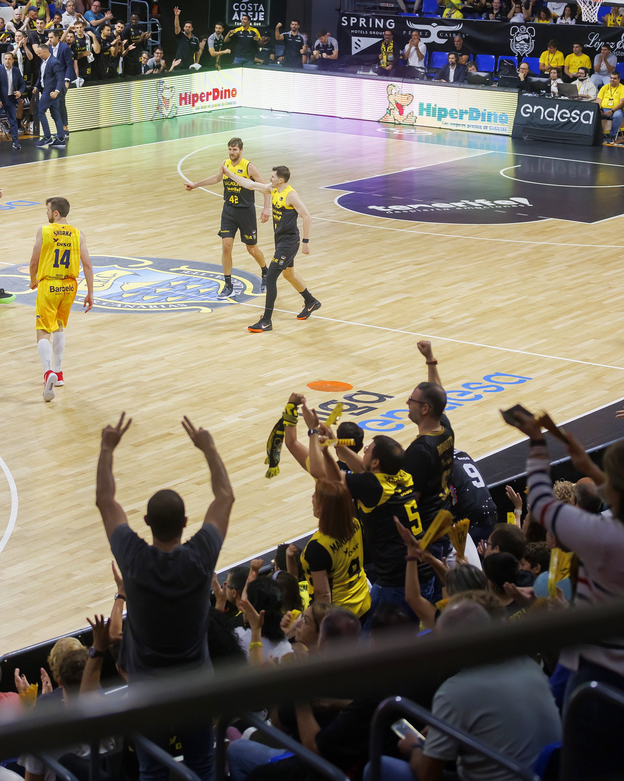 Pese a todo, el conjunto lagunero aguantó el tirón, sobrevivió desde el tiro libre y aprovechó seis puntos consecutivos de Joan Sastre para coger resuello camino del último cuarto (61-55, min. 30). Fue ahí cuando la luz de Marce volvió a alumbrar más que nunca. El capitán aurinegro manejó los hilos según los intereses que más convenían a su equipo, lo que unido a un esfuerzo tremendo atrás del bloque, acabó por dilapidar cualquier esperanza visitante y desató ya del todo la fiesta en las gradas del Santiago Martín.